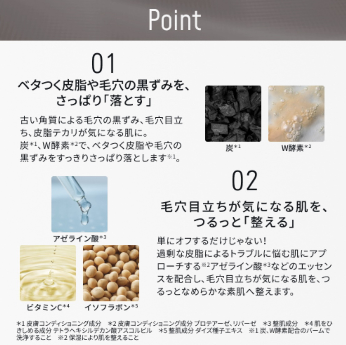 - ç*1ÃWé µçŽ *2ã§ãé»ãã¿æ¯ç©Žâ»1ãæ°ã«ãªãèãåå°â»2ããæŽããã¯ã¬ã³ãžã³ã°ããŒãã³ã°ããŒã ã ç*1ã§ã¡ã€ã¯æ±ããç®èãåžçããè§æ ãåè§£ããããã«ã®é µçŽ ã®åã§å€ãè§è³ªã®èç©æ±ããŸã§ãã£ãããªããâ»3 ããã«ç®èãã©ãã«ãè§è³ªãããŸãä»çµã¿ã«çç®ããã¢ãŒã©ã€ã³é ž*3ããã¿ãã³C*4ãªã©ãé åãæ¯ç©Žã®ç®ç«ã¡ã«ãããã€ãã£ãšãªããããªçŽ èãžæŽããŸãã åã¿ã®ããããŒã ãèãžã®æ©æŠã軜æžãèãžãããããå¯çããã¡ã€ã¯æ±ããå ã¿èŸŒãã§æŽãæµããŸãã ä¹³åã¹ããŒããUPâ»4ããŠãããããããæŽãæ®ããé²ããŸãã (â»1 å€ãè§è³ªã«ãããâ»2 è§è³ªå±€ã®ããšãâ»3 çãWé µçŽ é åã®ããŒã ã§æŽæµããããšãâ»4 åœç€ŸåŸæ¥åæ¯ã*1 ç®èã³ã³ãã£ã·ã§ãã³ã°æåã*2 ç®èã³ã³ãã£ã·ã§ãã³ã°æå ãããã¢ãŒãŒããªããŒãŒã*3 æŽèæåã*4 èãã²ããããæå ããã©ããã·ã«ãã«ã³é žã¢ã¹ã³ã«ãã«)