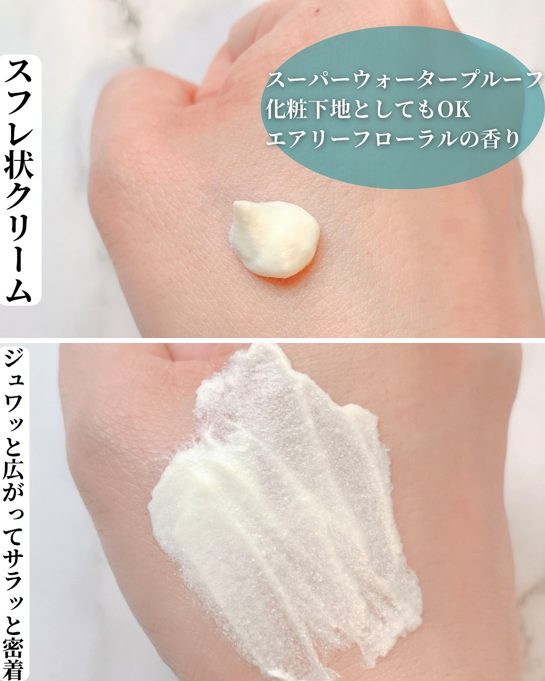 | 日焼け止め・UVケアランキング第28位 | テクスチャーはふわっとしたスフレクリームみたいで、 生クリームのようなホイップ状に出せるのがおもしろい! | 詳細を見る |