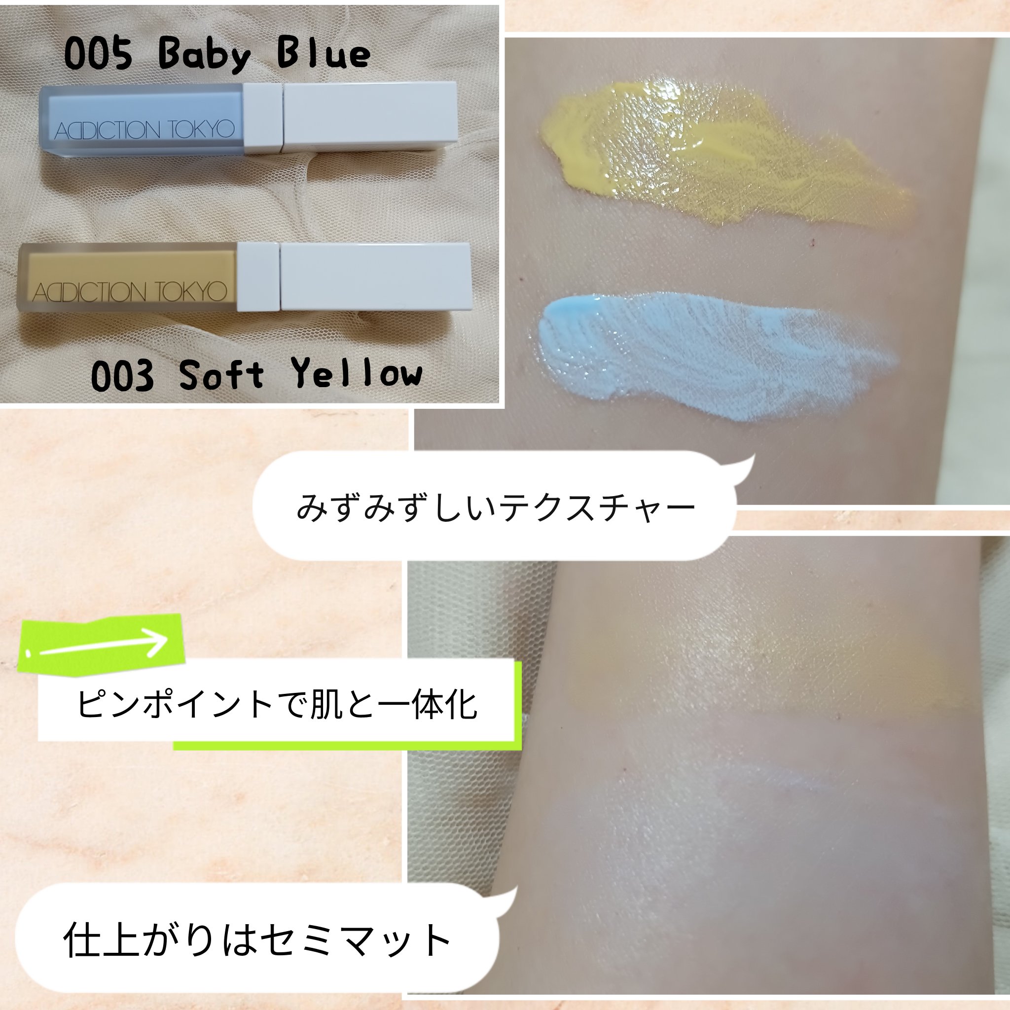 ✼••┈┈••✼••┈┈••✼アディクションさまからいただきました!スキンリフレクトカラーコレクター003SoftYellow005BabyBlueみずみずしいタッチで肌悩みを自然に補正できるカラーコレクター✨シミやクマなどの肌悩みや色ムラを...