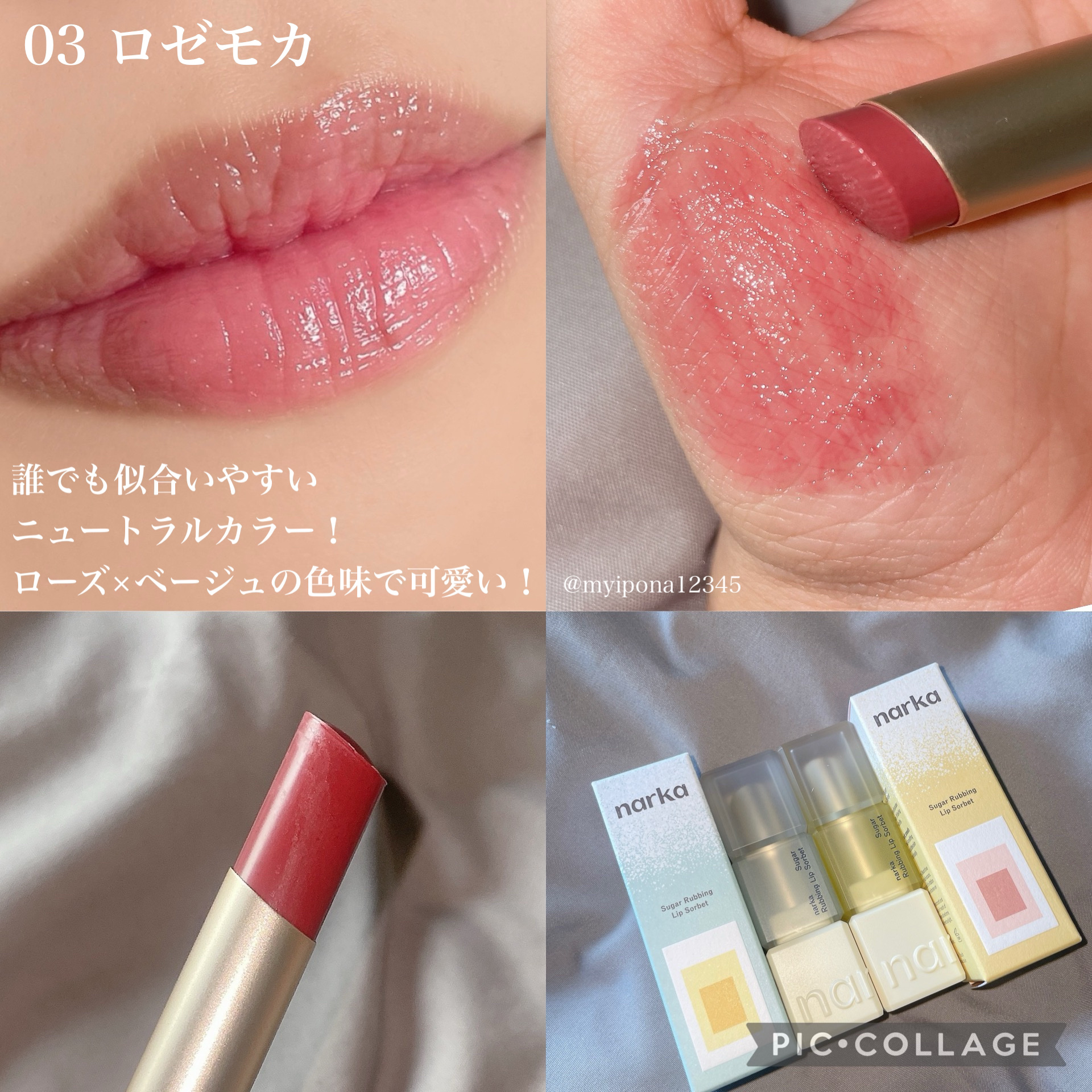ナルカシュガーラビングリップソルベリップコンディションのケアができるナルカのリップソルベ✨スティックタイプだから手軽にリップの角質ケアとカラーケアが同時にできるよ!スウォッチは00レモンマーマレードと03ロゼモカです✨00は夜寝る前とかメイク...