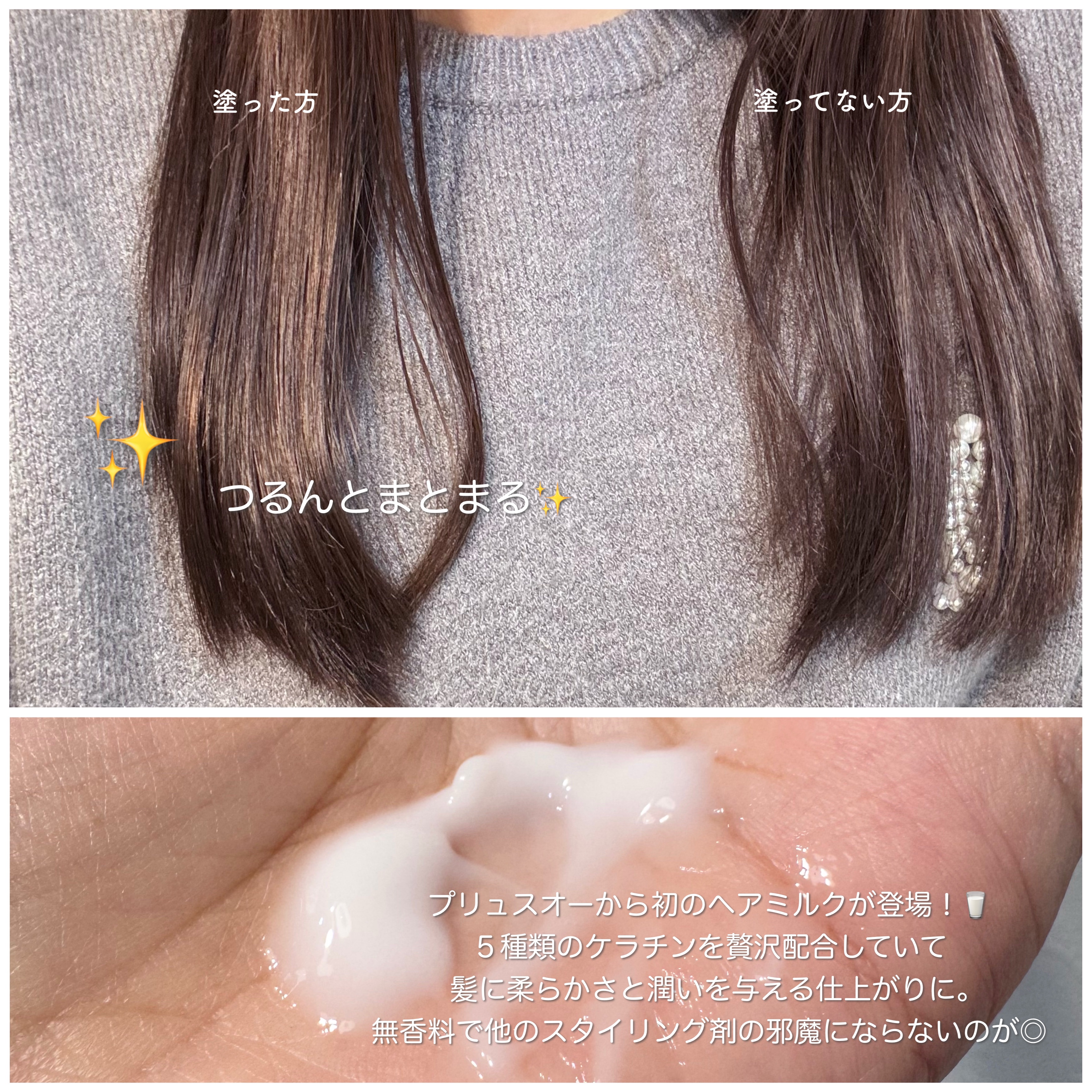 プリュスオーからヘアミルクが新登場⸜💓⸝ハイドロミルク150ml無着色、無香料のヘアミルク🥛さらっとベタつかず毛先まで軽やかにまとまる髪に導く🫶🏻´-ヘアミストやヘアオイルと組み合わせも◎マルチケラチン処方で髪の内外の複合ダメージにアプローチ...
