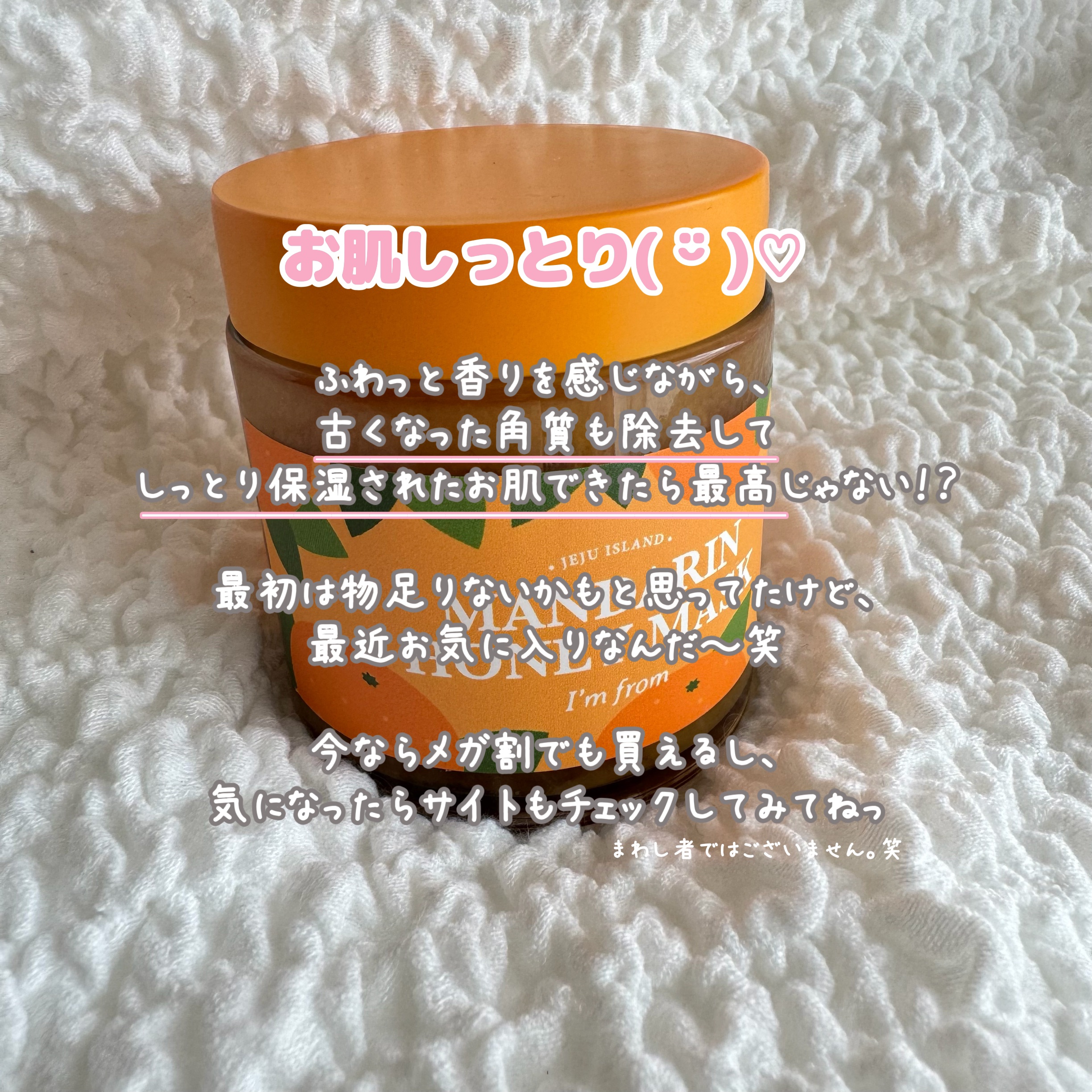 めちゃ柔らかくてなめらかテクスチャ🍊 硬めテクスチャのマスクに比べたら全然洗い流しやすいけど 流したあとはしっとりつるっつる🍊🍯💛 敏感肌で肌薄い私でも荒れたりしなかった🥺🫶🏻