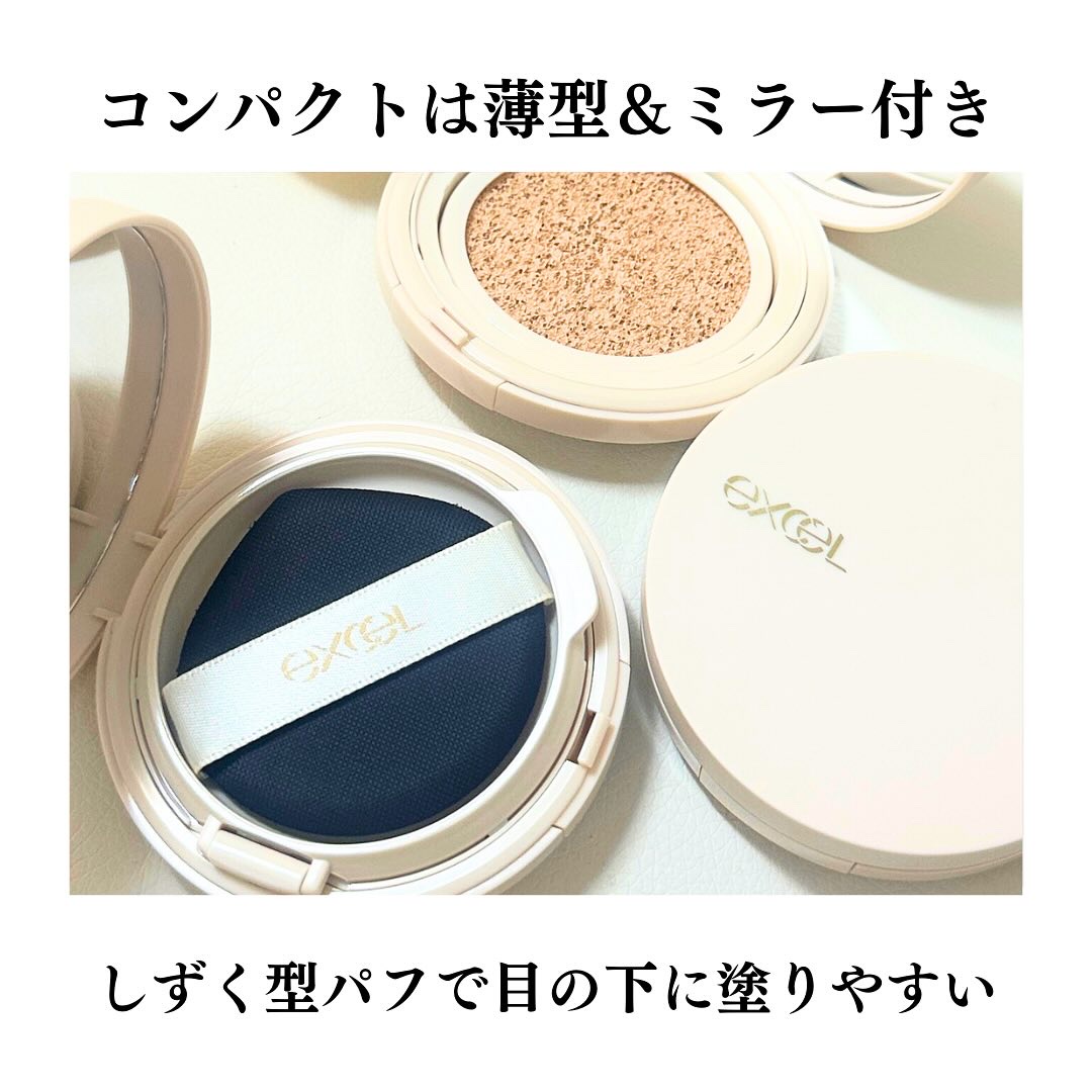 エクセルから遂に!クッションファンデーションが新登場!! みずみずしく軽やかな付け心地で素肌のようにつるんと薄膜カバー🫧 厚塗り感の無い自然な薄膜仕上がりなのに気になる肌悩みを隠してくれるカバー力の高さ💡 お肌をつるんと整えてツヤ感を出してくれるみずみずしい仕上がりが凄く綺麗でお気に入り❤️