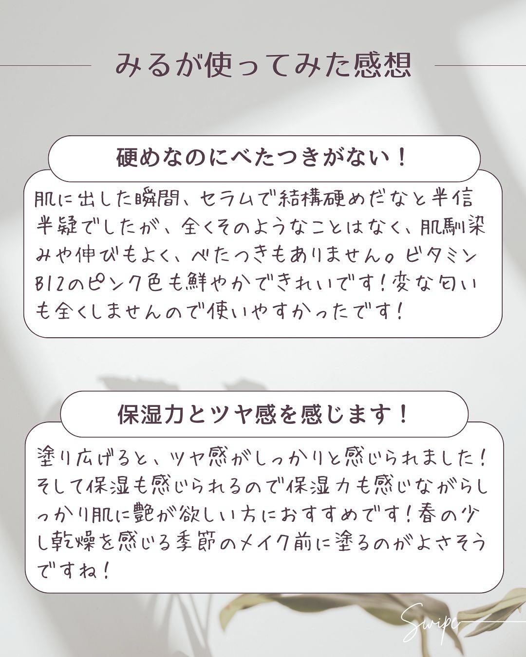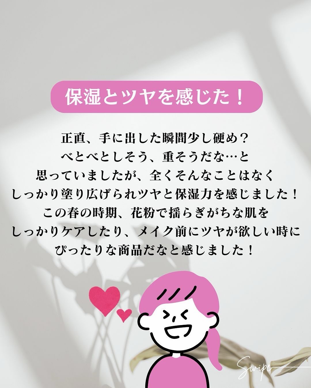 | べたべたペタペタ感もなく朝のメイク前にも使いやすかったです。しっとり保湿感があるセラムなのも心強い! | 詳細を見る | ||