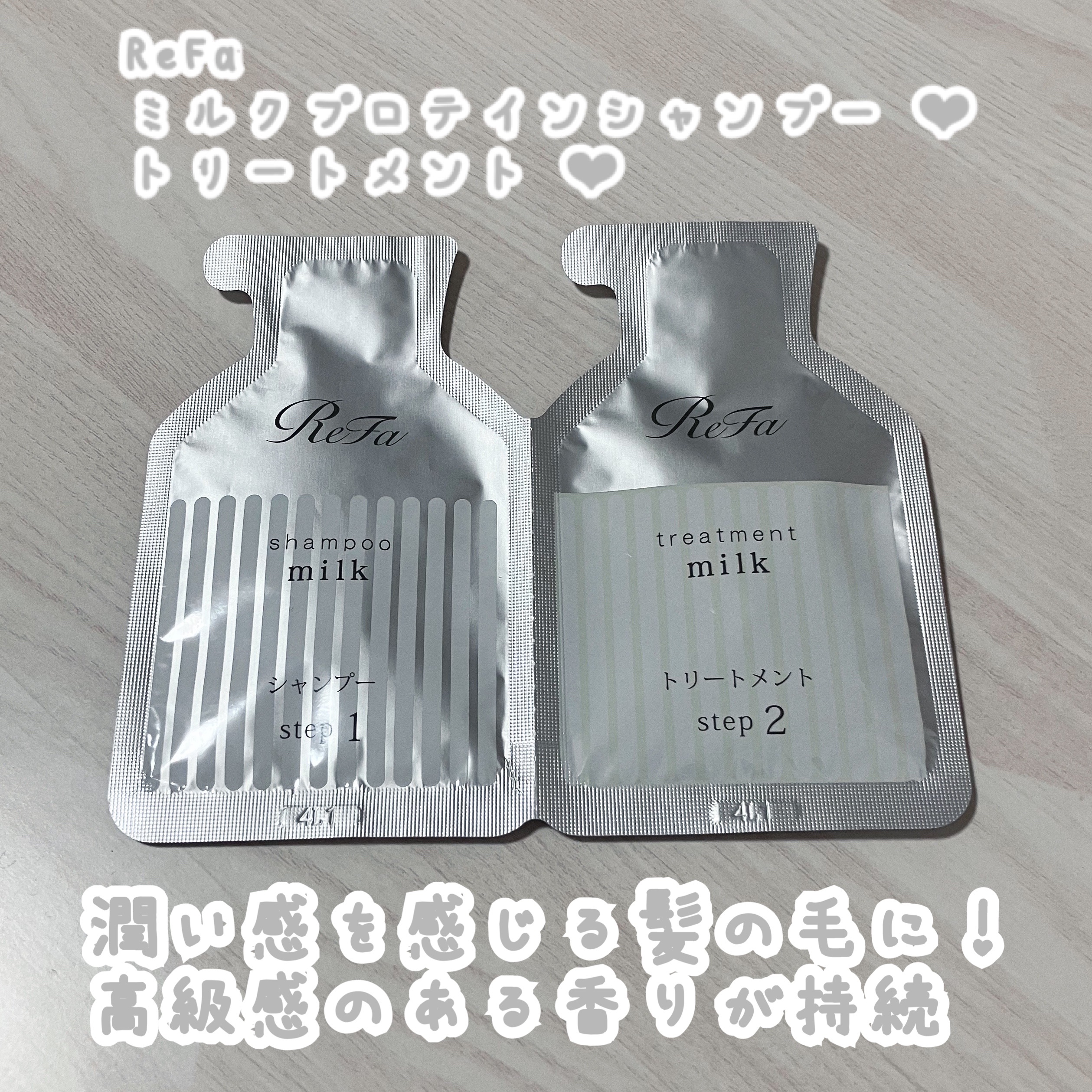 髪の80%がタンパク質だという事実に着目して開発されたミルクプロテインシャンプー&トリートメント。 Refaのシャントリは天然ミルク由来成分配合❤️ シャンプーもトリートメントもとってもいい香り✨ ドライヤーで乾かした後のさらさらトゥルン感🥺