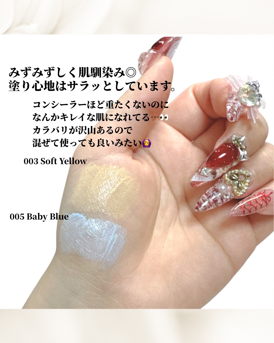 アディクションさまからいただきました🎁スキンリフレクトカラーコレクター✨今回は003SoftYellowと005BabyBlueをお試しさせていただきました。薄く透けるようなカラーフィルターで肌悩みを補正してくれる。すっと伸びて肌にぴたっと密...