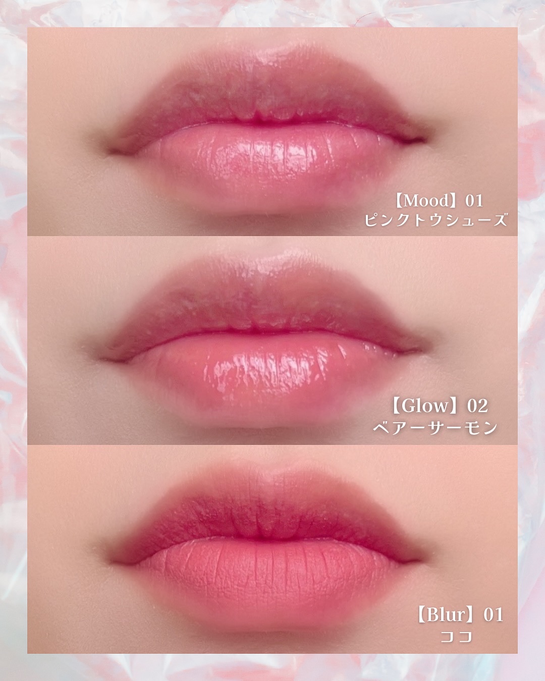 しっとりテクスチャーでよく密着してくれる使用感が良かった! 艶仕上がりだから上品だし青みピンクカラーがしっかり透明感を出してくれます✨ もっちもちのテクスチャーでベタつかないのに高発色でびっくり! うさぎの舌みたいな明るい青み粘膜ピンクでこれまた可愛い絶妙な色味でした🤍🤍 こんな可愛い絶妙なカラーがプチプラでゲットできて 質も良いから個人的に大優勝🏆