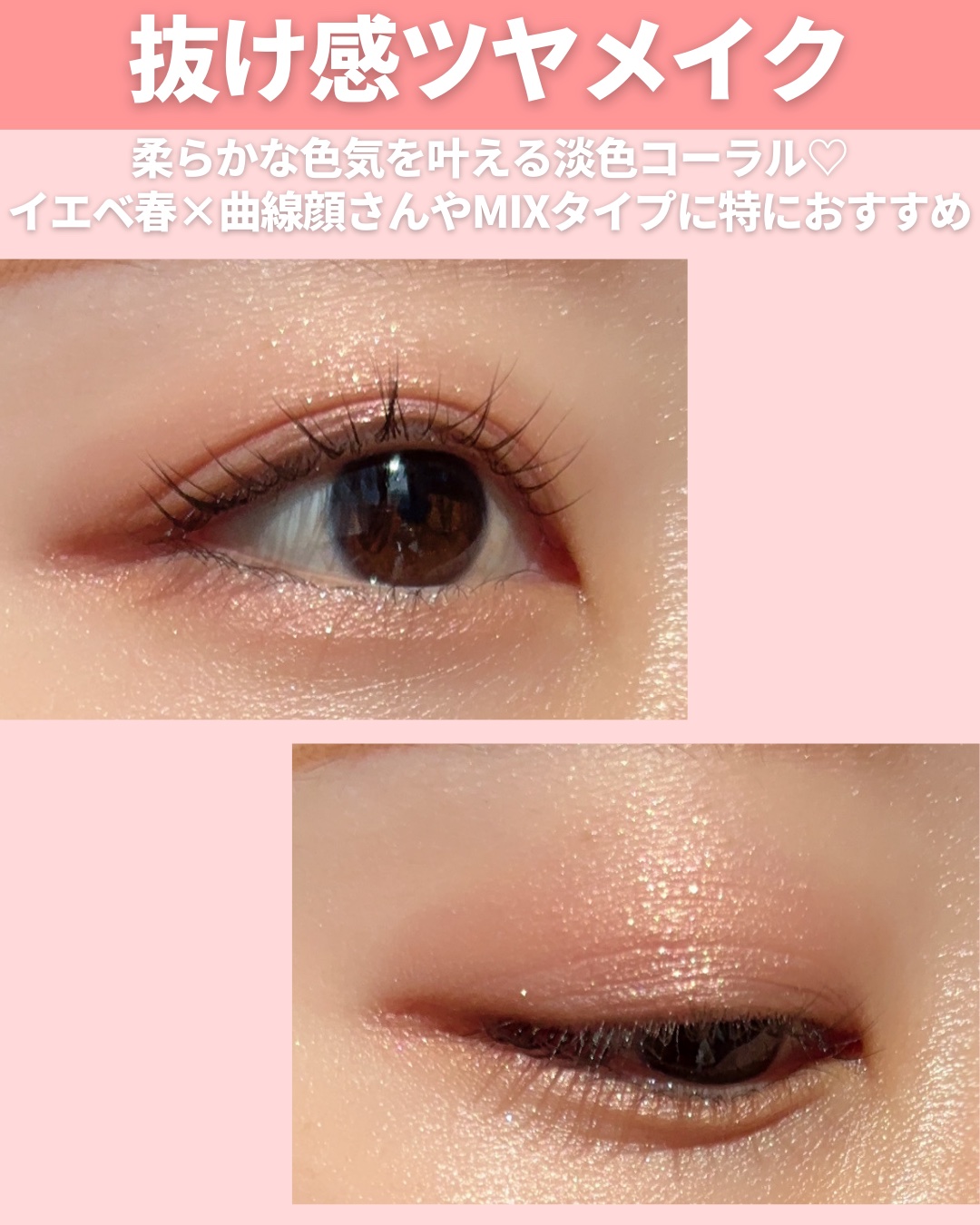 ルナソルのピンクはラメ感控えめなのでオフィスメイクにおすすめ🙆🏻♀️✨ CHANELはかなり万能だと思っていて、柔らかく仕上げればイエベ春の私ももちろんハマるし✨ ブランドごとにもちろん特徴がありますし、ピンクといってもパレットによって仕上がりはさまざま!