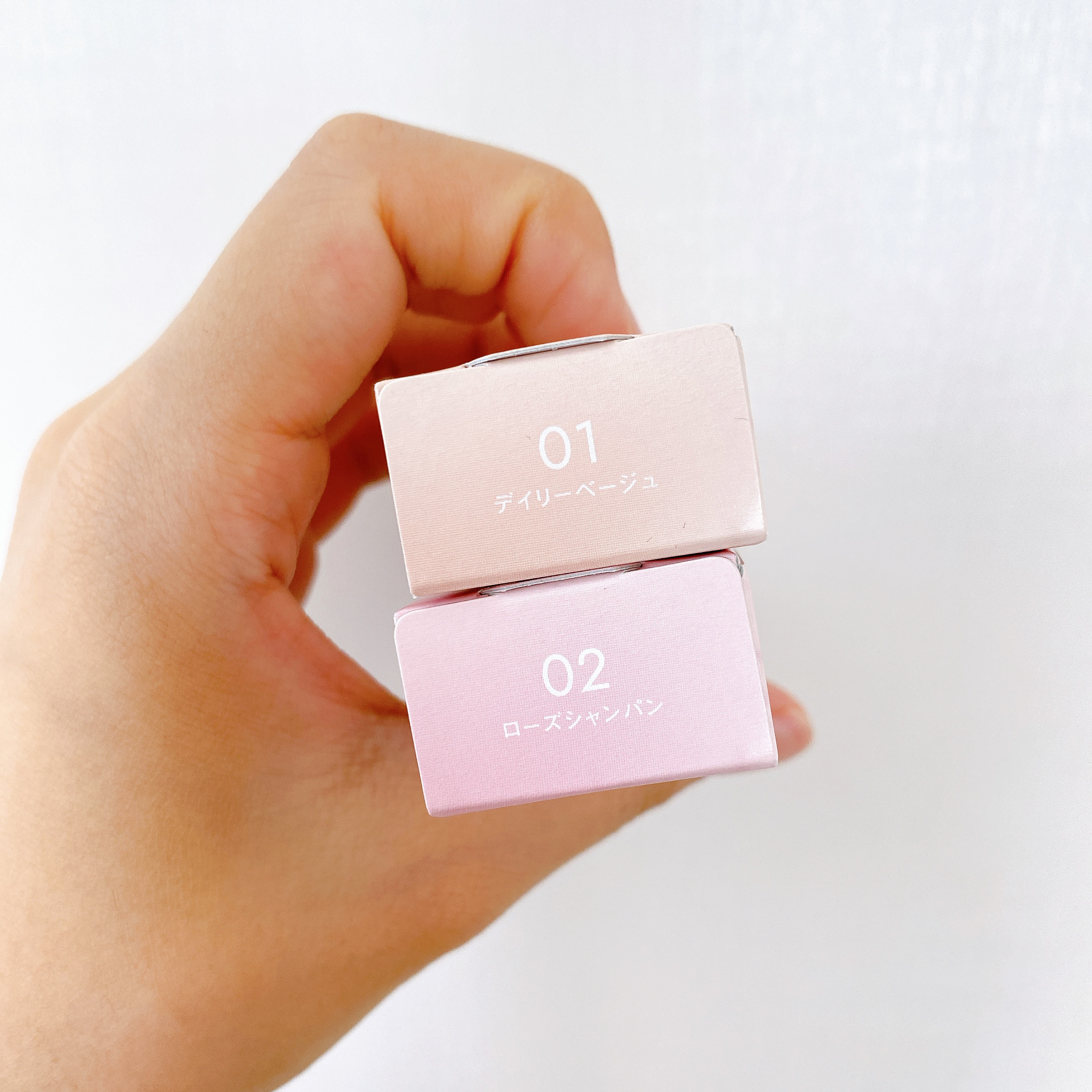 伸びがよくスっとなじんでくれるリキッドタイプで乾燥が気になる季節にも!! 「01デイリーベージュ」は普段使いしやすいナチュラルカラーでベースに仕込むと綺麗なツヤ肌に 「02ローズシャンパン」はしっかりとしたツヤ感で華やかな印象に♡
