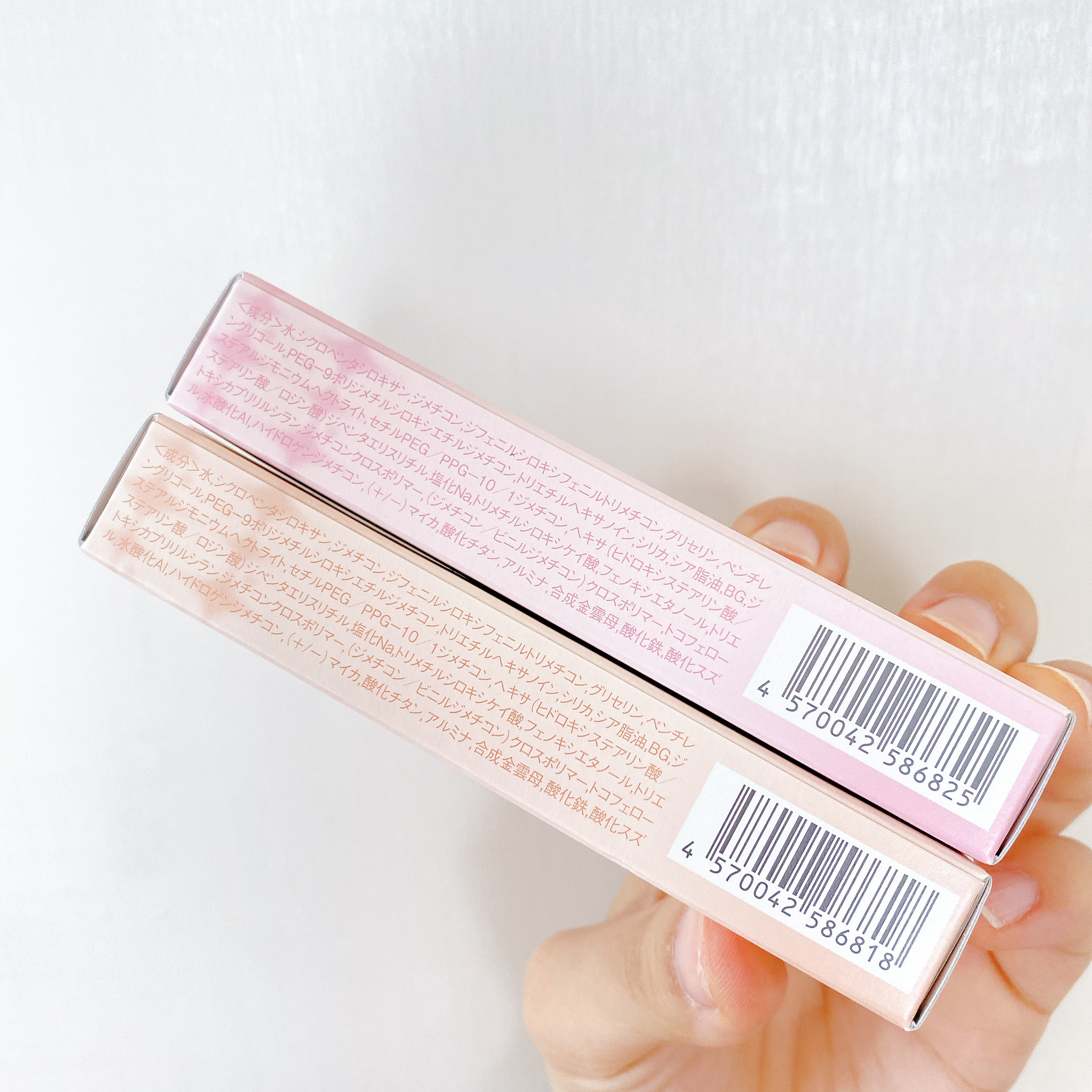 - <01 デイリーベージュ> 水、シクロペンタシロキサン、ジメチコン、ジフェニルシロキシフェニルトリメチコン、グリセリン、ペンチレングリコール、PEG-9ポリジメチルシロキシエチルジメチコン、トリエチルヘキサノイン、シリカ、シア脂油、BG、ジステアルジモニウムヘクトライト、セチルPEG/PPG-10/1ジメチコン、ヘキサ(ヒドロキシステアリン酸/ステアリン酸/ロジン酸)ジペンタエリスリチル、塩化Na、トリメチルシロキシケイ酸、フェノキシエタノール、トリエトキシカプリリルシラン、ジメチコンクロスポリマー、(ジメチコン/ビニルジメチコン)クロスポリマー、トコフェロール、水酸化Al、ハイドロゲンジメチコン、(+/-)マイカ、酸化チタン、アルミナ、合成金雲母、酸化鉄、酸化スズ <02 ローズシャンパン> 水、シクロペンタシロキサン、ジメチコン、ジフェニルシロキシフェニルトリメチコン、グリセリン、ペンチレングリコール、PEG-9ポリジメチルシロキシエチルジメチコン、トリエチルヘキサノイン、シリカ、シア脂油、BG、ジステアルジモニウムヘクトライト、セチルPEG/PPG-10/1ジメチコン、ヘキサ(ヒドロキシステアリン酸/ステアリン酸/ロジン酸)ジペンタエリスリチル、塩化Na、トリメチルシロキシケイ酸、フェノキシエタノール、トリエトキシカプリリルシラン、ジメチコンクロスポリマー、(ジメチコン/ビニルジメチコン)クロスポリマー、トコフェロール、水酸化Al、ハイドロゲンジメチコン、(+/-)マイカ、酸化チタン、アルミナ、合成金雲母、酸化鉄、酸化スズ