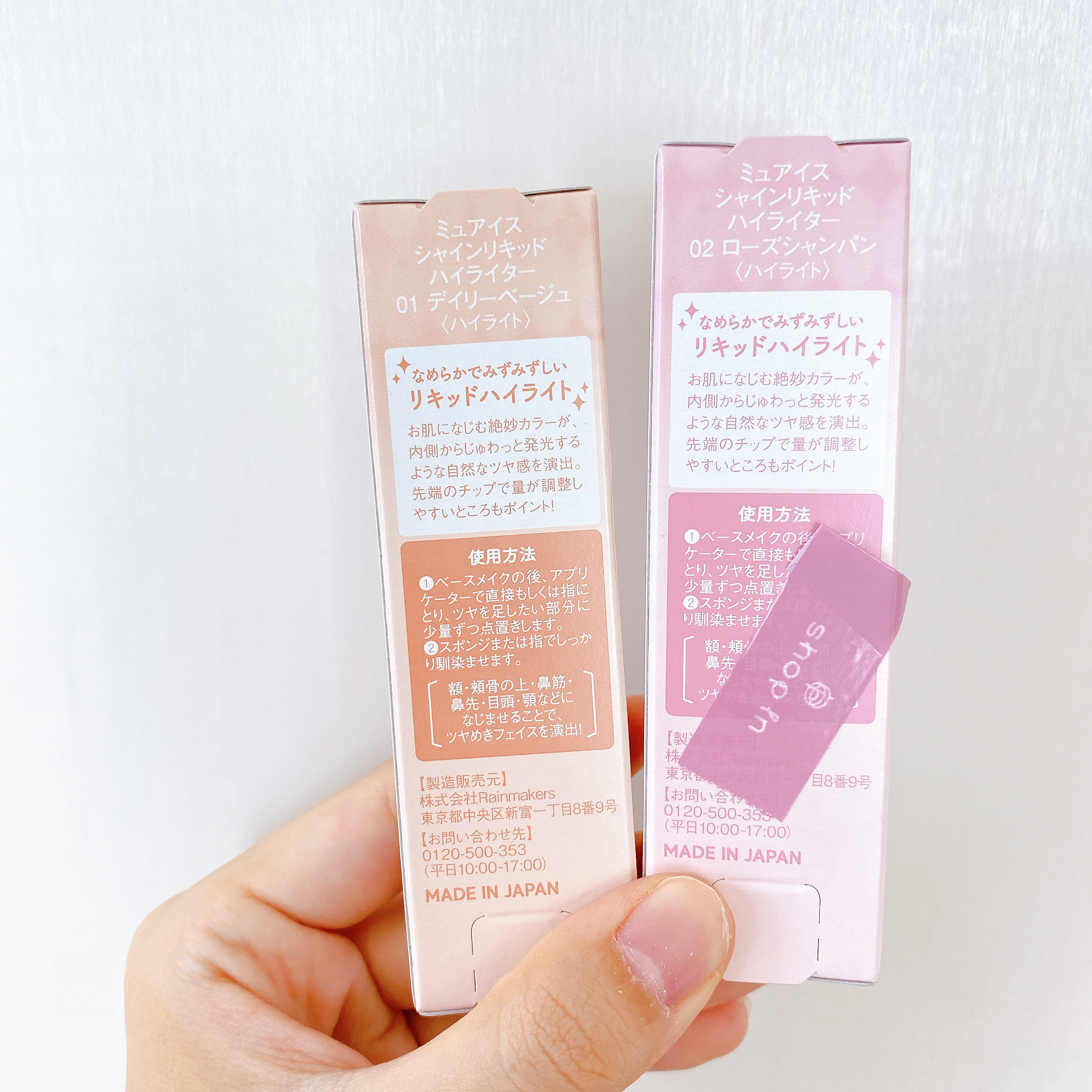 - 【2024クリスマスコフレ】〈限定発売〉 さっと塗布してすぐなじむ! 瞬間うるみ顔を叶えるリキッドタイプのハイライター ◆乾燥シーズンにうれしい、リキッドタイプ 乾燥が気になる方にもおすすめのリキッドタイプのハイライター。 みずみずしいテクスチャーで、肌の内側から輝くような美しいツヤ感を演出します。 ◆ひと塗りでナチュラルな立体感を演出 立体感を出したい部分にさっと塗布し、軽く手でぼかせば自然なツヤ肌が完成。 微細なパール配合で、ナチュラルで上品なツヤを叶えます。 また、細身のチップで狙ったところに塗布しやすく、初心者でも使いやすいアイテムです。 ◆なりたい印象で選べる2色展開 「01 デイリーベージュ」は肌になじむミュートカラーで、ナチュラルに仕上げたい時や、ハイライターを使い慣れていない方にもおすすめ。オンオフ問わず、幅広いシーンでお使いいただけます。 「02 ローズシャンパン」は、血色感を与えてやわらかなフェミニンさを演出するピンクベージュ。これ1本でも抜け感のある頰を演出します。