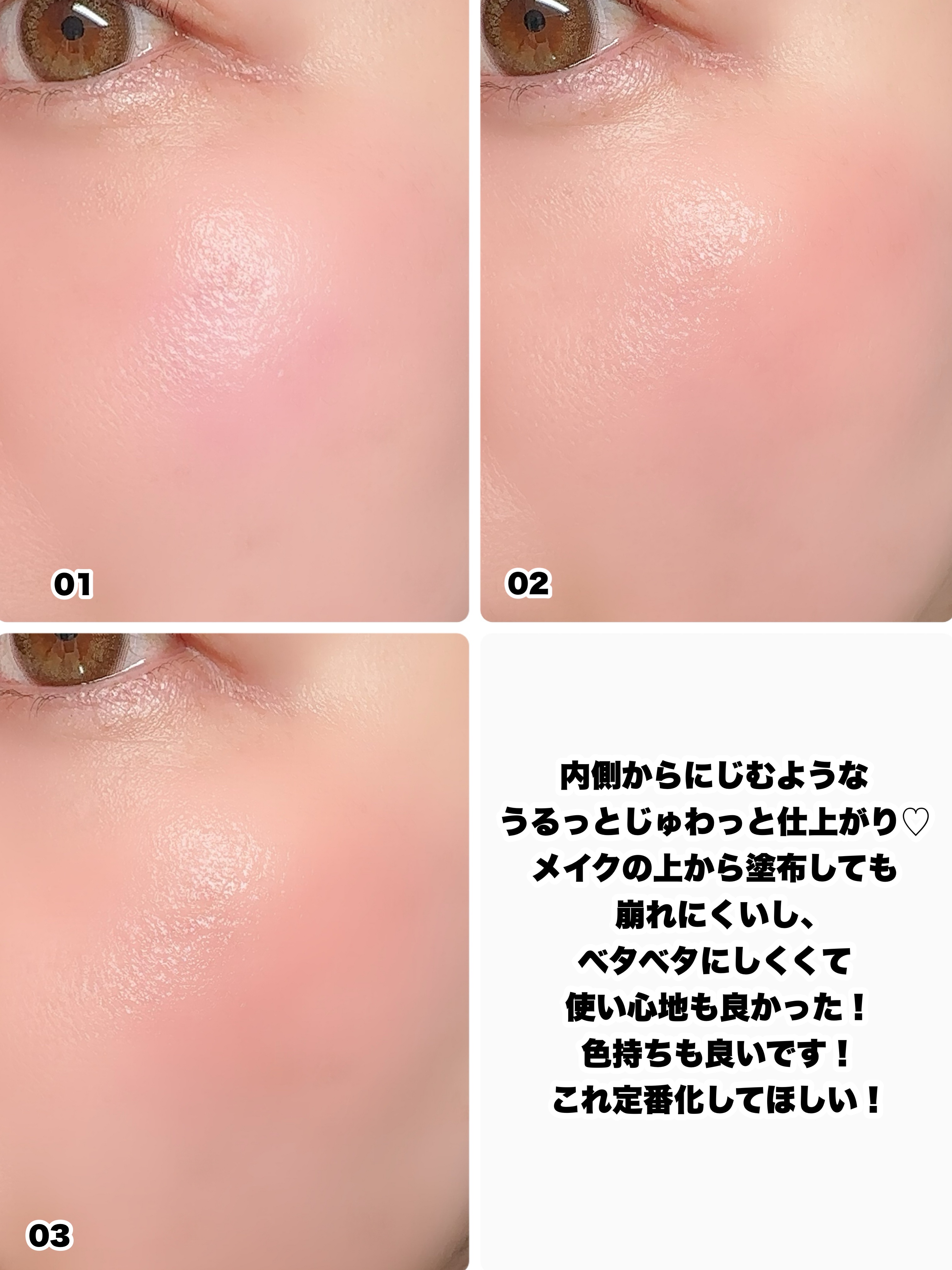 とろける、じゅんわりチーク。内側からにじみ出るような血色感と生っぽいツヤ感が魅力のクリームチークˎˊ˗バームのような質感で触れるとじんわりとろけて、薄づきな仕上がり。濃さの調節がしやすく簡単に綺麗に仕上がるのがうれしい👏🏻どのカラーもすき…!...
