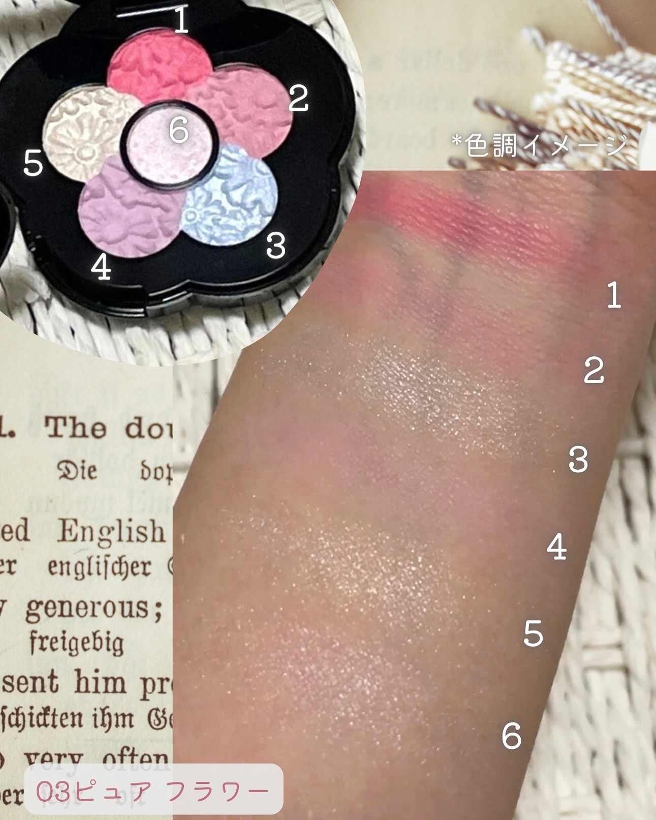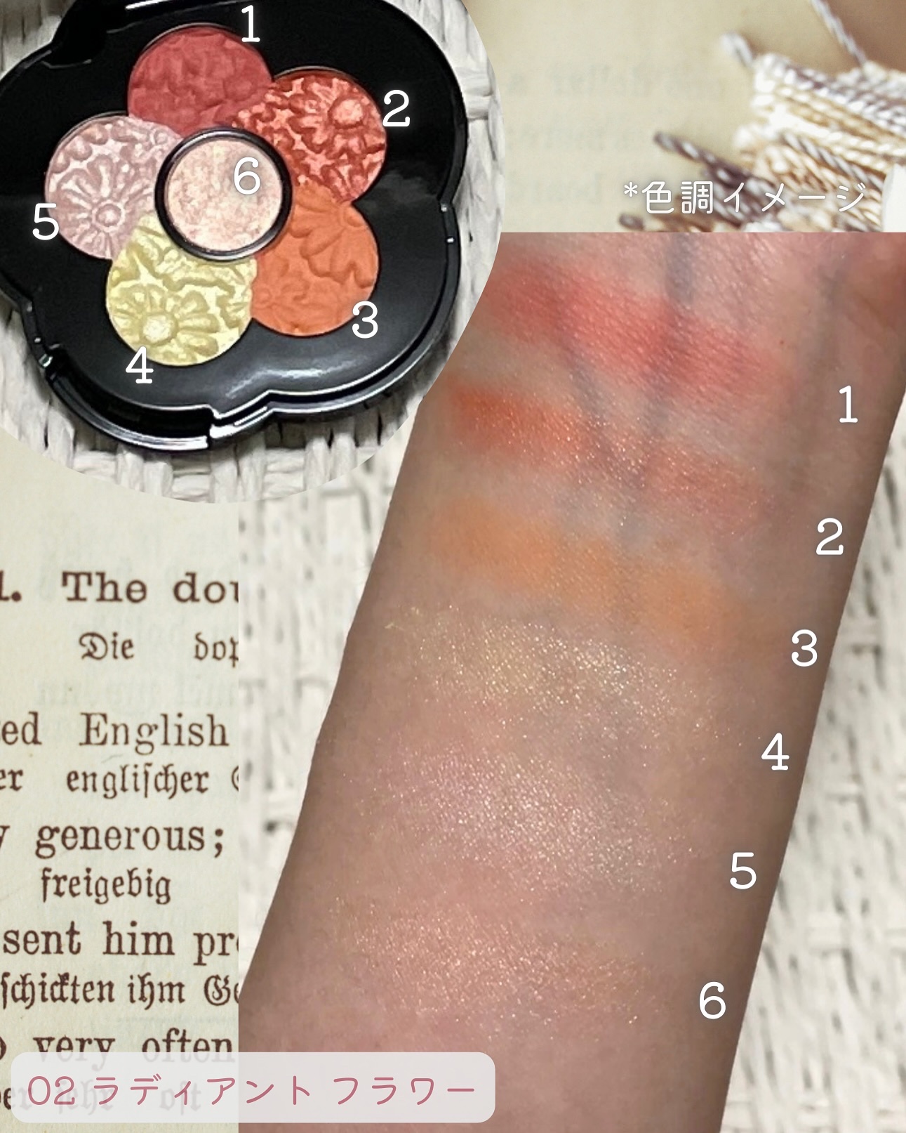 - 数量限定発売 血色感と立体感を演出する多色のチークパレット。 様々なアレンジを楽しめます、混ぜ方次第で。 1. 美しく頬を彩る2つの質感のチークカラーとハイライトカラー マットタイプ、パールタイプのチーク5色とハイライト1色のパレットで構成。 その日の気分に合わせて混ぜ方を変えることで何通りものバリエーションが叶います。 2. 美しい発色とうるおいをキープ ...デイジーエキス※(ヒナギクエキス) ※...保湿成分 <使用方法> 指やブラシ、チップなどを用いてお使いください。 ※本製品にはブラシ等は付属しておりません