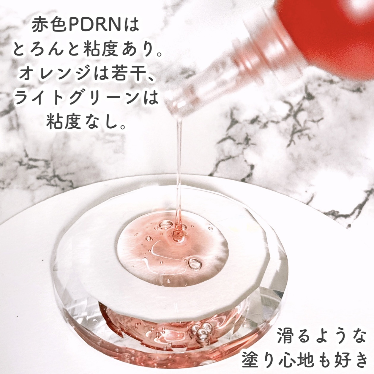 | 糸を引くようなとろみのあるテクスチャ。肌になじませるとぷりっとしたハリ感が! | 詳細を見る | ||