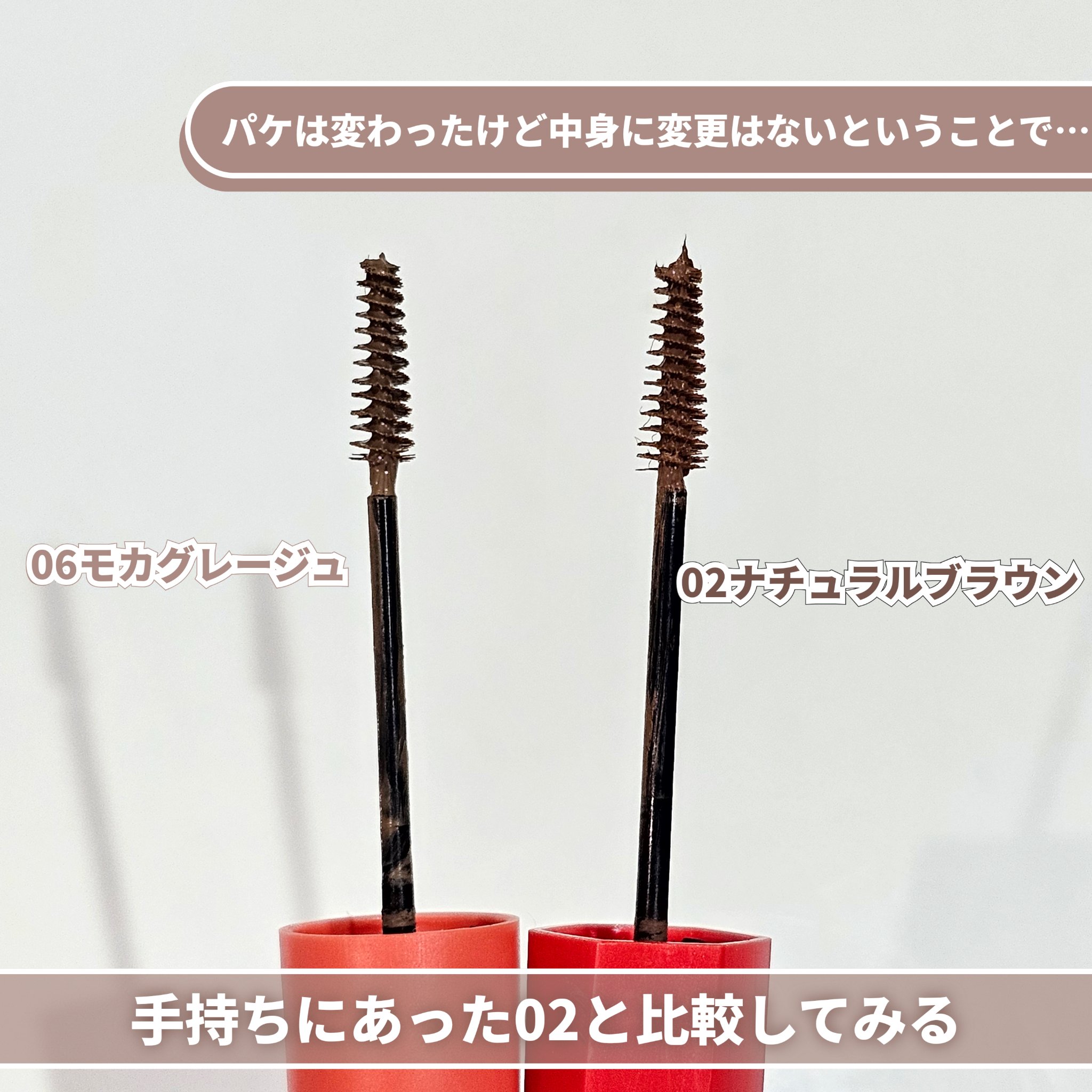 01シアーブラックを初めて使った時に感動し ヌードアイラッシュは基本的に売り切れてるので… 03のシアーグレーをGETしたのですが 太陽に透かすと03シアーグレーは やはり液が半透明のブラウンで 繊維は黒なので 色味に大きな差はなく ブラウンでも繊維が黒なので目力が死なないのも◎ カールキープもお湯落ちとは思えないくらい良い、 ダマにもならずスっとキレイなセパレートまつげが 簡単にできてとっっってもお勧めですわ…!