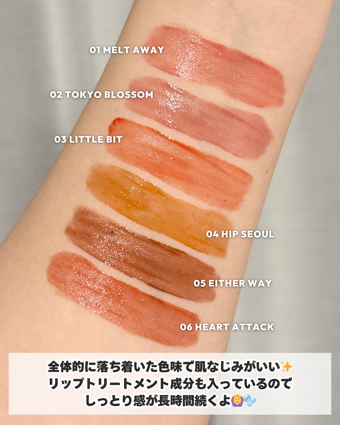 aespaのジゼルちゃんのビジュアルに思わず視線が釘付け…!話題の韓国コスメブランド"EITHER&"。ぷるんとクリアな光沢感と色もちの良さが魅力の大人気ティントから新色が3色登場🪄柑橘系の香り付きでベタつかず保湿力も◎フルーツシロップみたい...