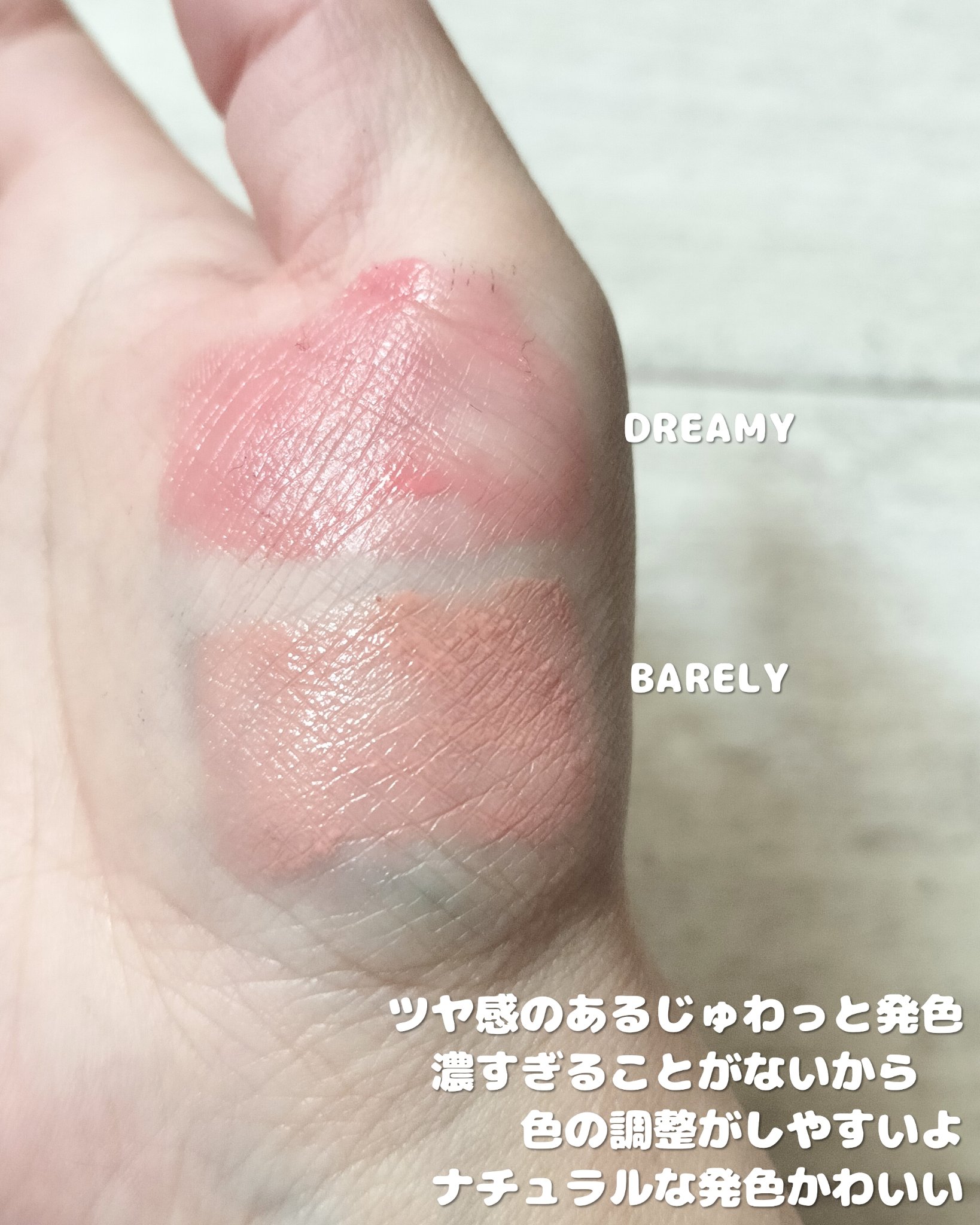 - ・花びらのような血色感をもたらすウォーターリキッドブラッシャー ・ウォータリーテクスチャーでツヤ感を出しながらナチュラルにレイヤリングが可能 ・持ち運びが便利でいつでも血色感をプラスできる ・チーク初心者でもナチュラルに発色するので安心! ・ダリア花抽出エキスのスキンコンディショニング作用によってお肌をケアしながらメイク可能。 ブルベオススメカラー/BARELY×TAFFY イエベオススメカラー/BARELY×DREAMY