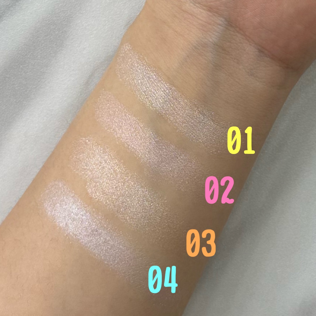 - むにゅっと生レアな質感♡ 繊細パールぎっしり配合のハイライター あふれ出すようなうるっとツヤで、透明感のある光沢肌に仕上がるハイライターです。 ”むにゅっ”とした質感で、お肌にぴたっと密着します。 塗るとサラッとした仕上がりで長時間ヨレにくい!