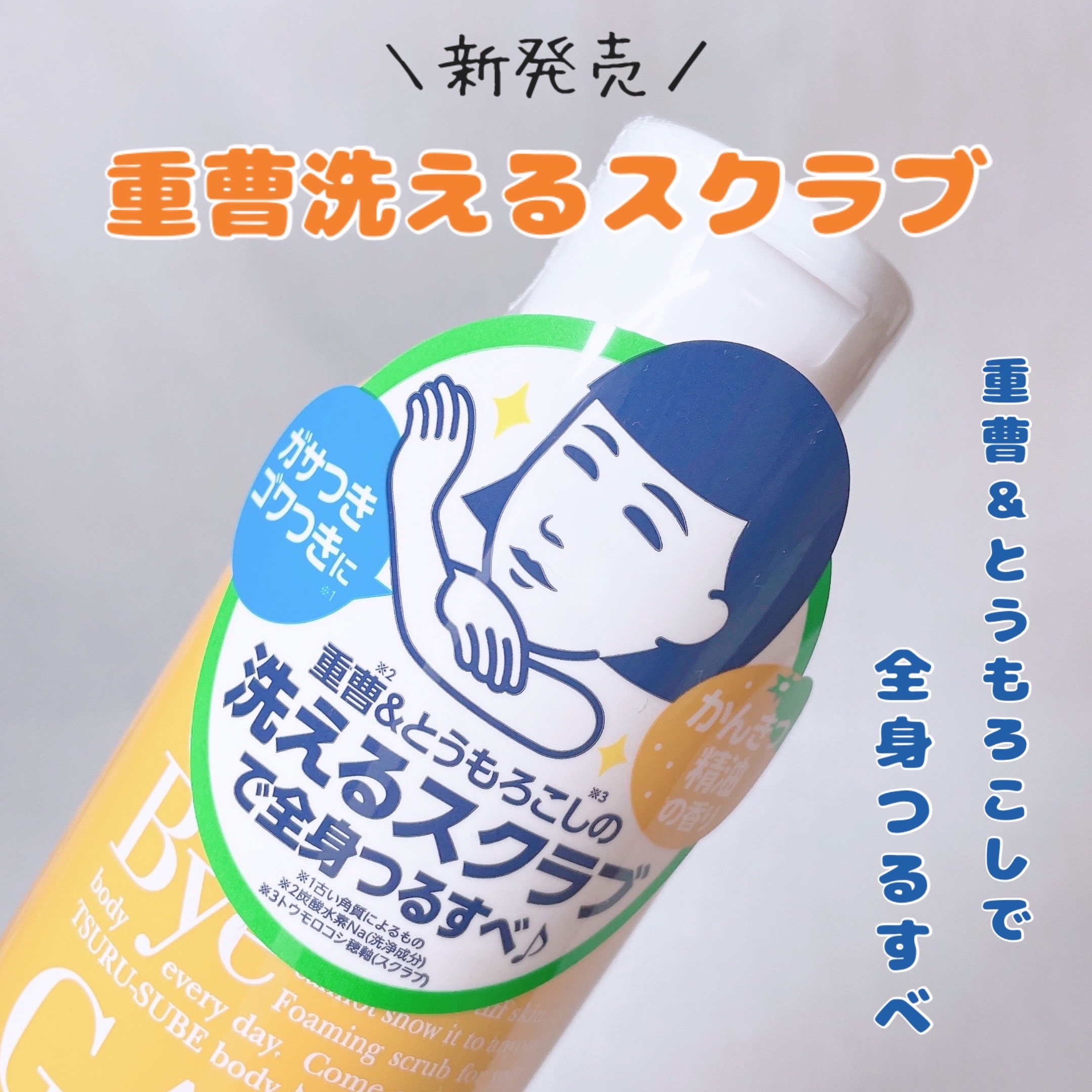 - ブツブツ二の腕にザラザラかかと・・・気になる全身のガサつき・ゴワつき*1は重曹*2&とうもろこし*3の洗えるスクラブで丸ごとつるんっ♪ 重曹が角質をゆるめ汚れを浮かせ、とうもろこしのやわらかスクラブでやさしい使い心地で磨きます。 思わず撫でたくなるようなつるすべボディに。 しっかり泡立てるとボディソープにもなる1本2役。毎日使えます。 かんきつ精油の香り。 *1 古い角質によるもの *2 炭酸水素Na(洗浄成分) *3 トウモロコシ穂軸