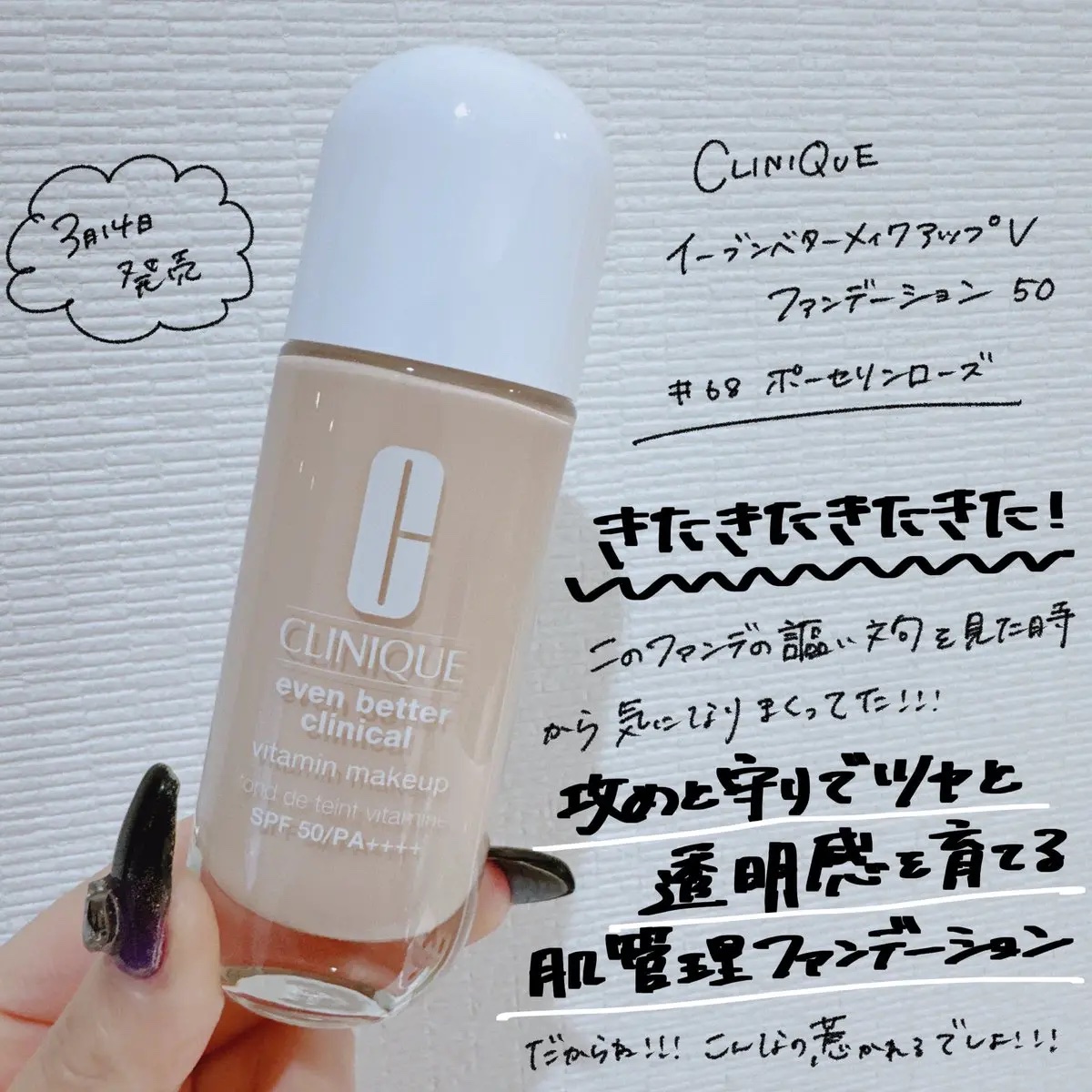 ・CLINIQUEイーブンベターメイクアップVファンデーション50SPF50/PA++++68porcelainrose7種のビタミン配合攻めと守りのスキンケア発想でツヤと透明感を育てる肌管理ファンデーションファンデーションと思えないくらい軽...