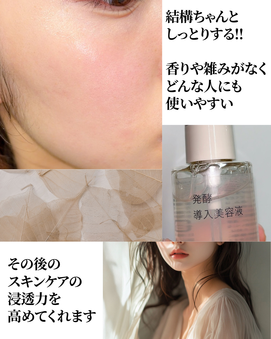 - 毎日肌に使うものだからこそ、天然由来成分*100%にこだわりました。 ⽔を使わず、配合成分の65%以上が肌にハリとうるおいを与える米ぬか発酵液でできた、濃厚なとろみのあるテクスチャーの美容液です。 化粧水の前に使用することで、保湿成分が角質層まで浸透しやすいなめらかな肌に整えます。 米ぬか発酵液の素となる米ぬかは7種のビタミン、8種のミネラルを含有した山形県産の米ぬかを使用しました。 発酵させることで、肌にうるおいを与えるアミノ酸の含有量が増加し、もっちりとしたハリのあるなめらかな肌に整えます。 発酵液以外にも発酵の過程で生成される酵母エキスや米ぬかから得られる米ぬか油も配合しており、米ぬかの成分を余すことなく活用しています。 *天然成分を化学的に反応させた成分を含みます [保湿成分] セラミド、5種のアミノ酸、加水分解ヒアルロン酸、グリチルリチン酸2K ※無香料、無着色、無鉱物油、パラベンフリー、アルコールフリー、フェノキシエタノールフリー、弱酸性 スティンギングテスト済み(すべての方にアレルギーや皮ふ刺激が起きないわけではありません) アレルギーテスト済み(すべての方にアレルギーが起きないわけではありません)