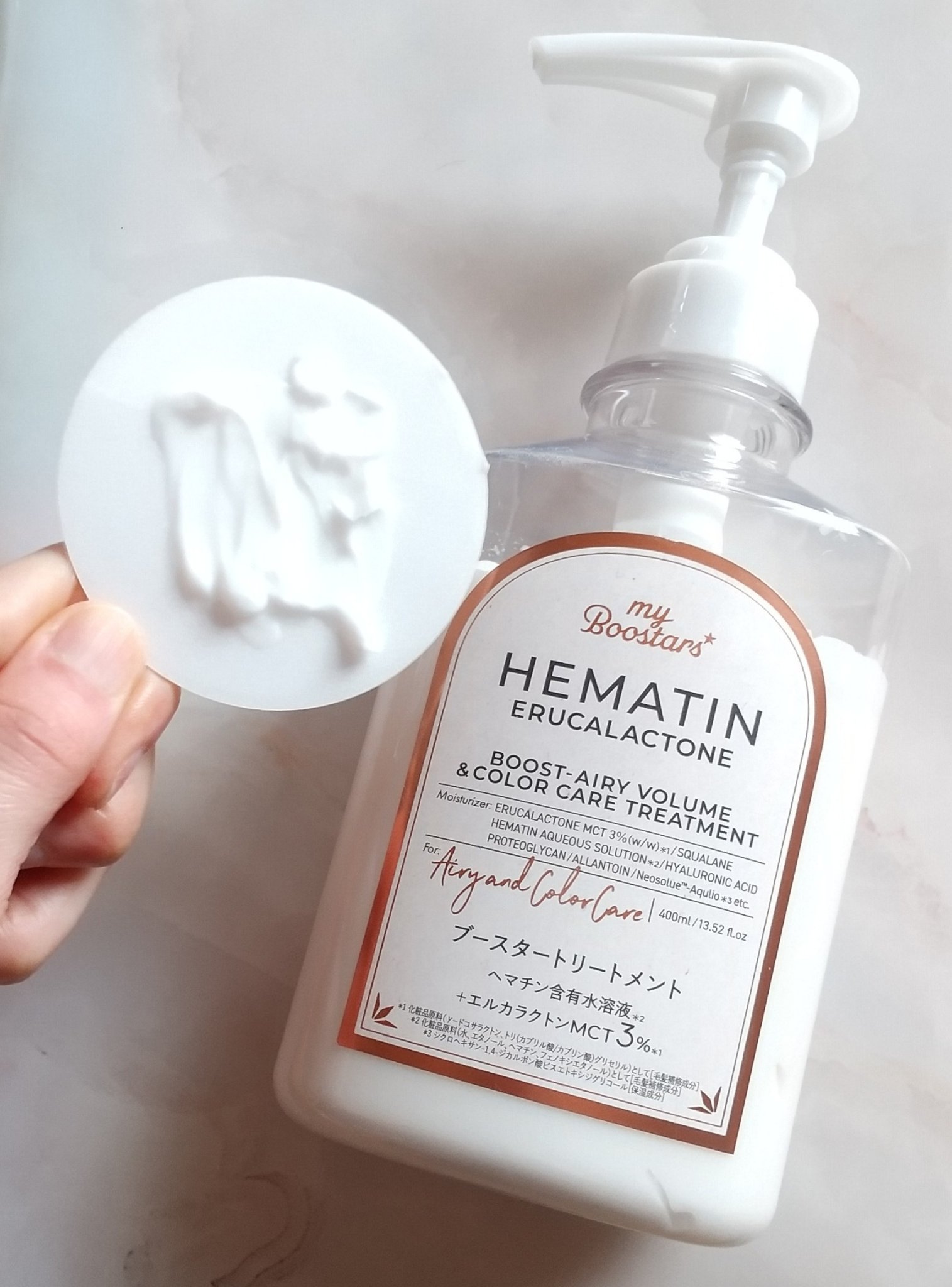 - カラーの色もちをサポートしてふんわり髪へ導く、ヘマチン(*1)配合シャンプー。根元ふんわりなのに、毛先のまとまりが続きます。ペアー&ムスクの香り。 ●ヘマチンブースト エアリー&カラーケア処方: 【ヘマチン(*1)】カラーした髪の色もちをサポート、乾燥ダメージを受けた髪を補修する 【ブースター(*2)】美容液成分(*1)の髪内部への浸透(*3)を助ける ●サルフェート・シリコーン・パラベン・鉱物油・合成着色料フリー *1 ヘマチン[毛髪補修成分] *2 シクロヘキサン-1,4-ジカルボン酸ビスエトキシジグリコール[保湿成分] *3 髪の内部まで カラーの色もちをサポートしてふんわり髪へ導く、ヘマチン(*1)配合トリートメント。根元ふんわりなのに、毛先のまとまりが続きます。ペアー&ムスクの香り。 ●ヘマチンブースト エアリー&カラーケア処方: 【ヘマチン(*1)】カラーした髪の色もちをサポート、乾燥ダメージを受けた髪を補修する 【γ-ドコサラクトン(*2)】熱反応する菜種由来の油が髪を補修してまとまりを維持する 【ブースター(*3)】美容液成分(*1)の髪内部への浸透(*4)を助ける ●サルフェート・パラベン・鉱物油・合成着色料フリー *1 ヘマチン[毛髪補修成分] *2 毛髪補修成分 *3 シクロヘキサン-1,4-ジカルボン酸ビスエトキシジグリコール[保湿成分] *4 髪の内部まで