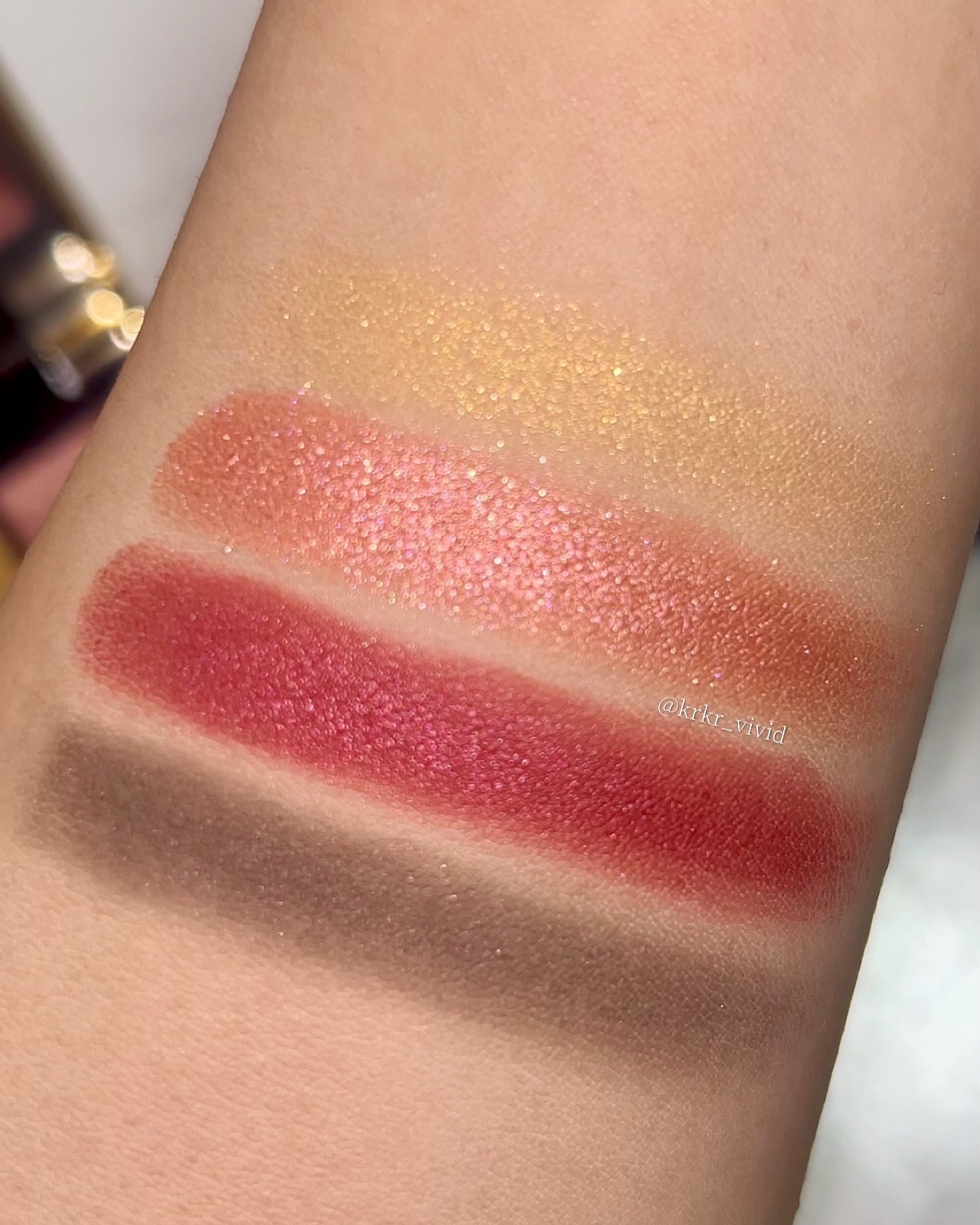 花零…やっぱり偏光が可愛すぎる…! お洒落なパレットという印象🫧 左上のカラーは馴染みよくかなり使いやすい万能カラー 右下のカラーは締め色にちょうどよかったし実は入っているピンクのラメが可愛いの✨ これ使うとほんとお洒落な女になれた気分💃