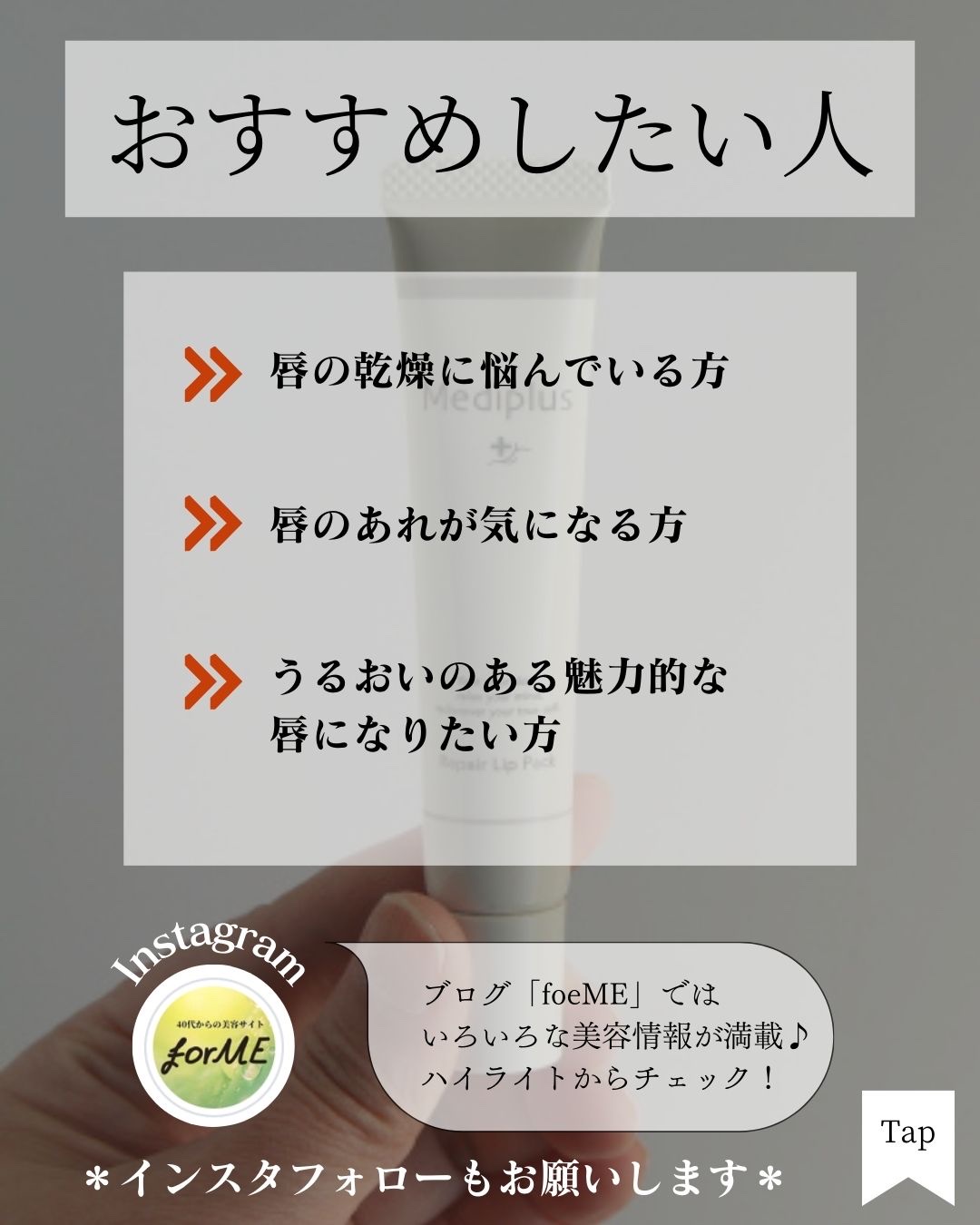 ﹏﹏﹏﹏﹏﹏﹏﹏﹏﹏﹏メディプラスリペアリップパック﹏﹏﹏﹏﹏﹏﹏﹏﹏﹏﹏最近のモーニング・ナイトルーティンに欠かせないアイテム💋寝る前にたっぷり塗ってパックするように使うのがお気に入り🌝翌朝、鏡を見るのが楽しみになるくらい、唇がぷるんとやわ...
