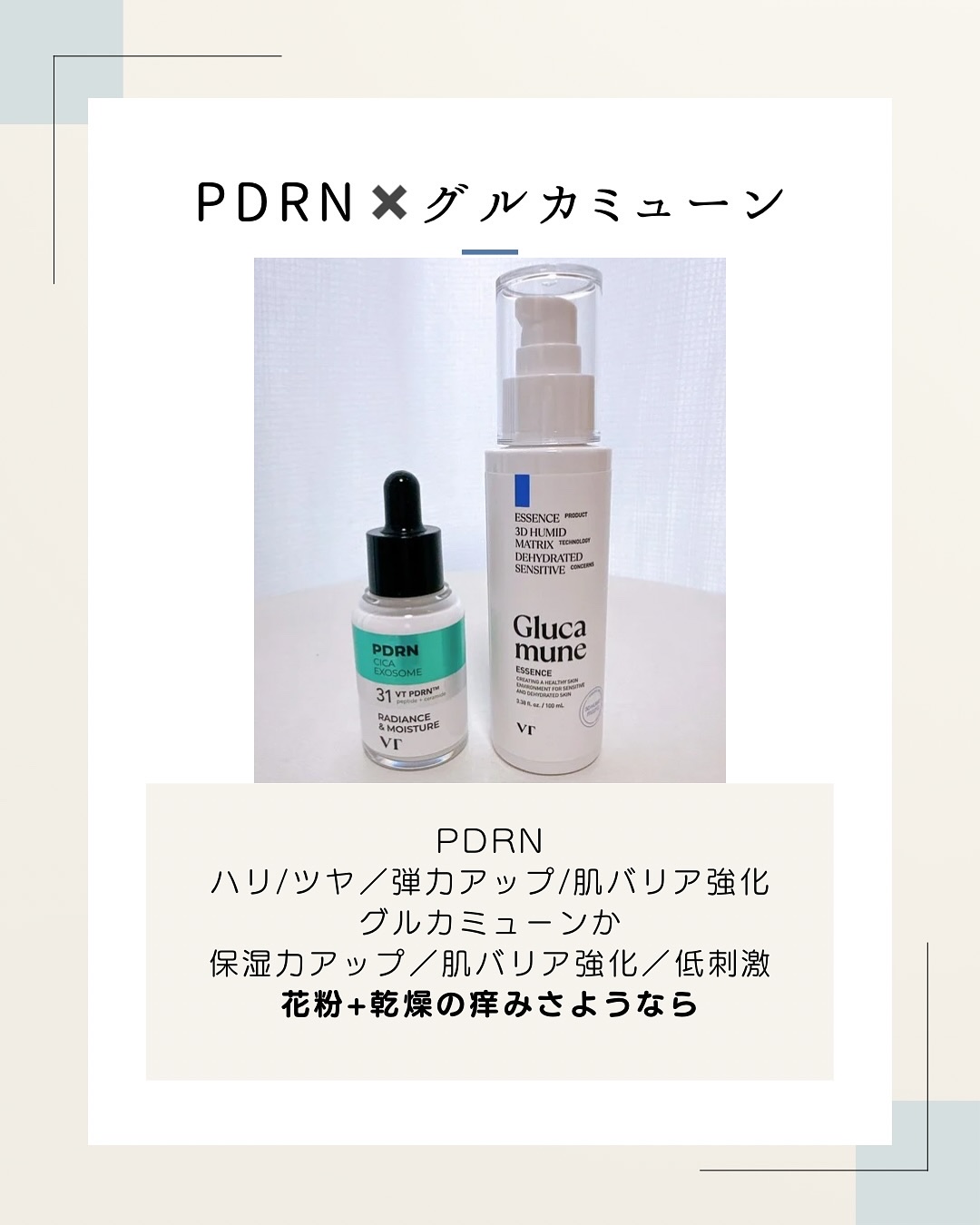 VT🌿なりたい肌や肌悩み別に、PDRNアンプルと組み合わせて使用すると相乗効果が得られる組み合わせ4種をご紹介✨PDRNアンプルはPDRNとCICAが配合されているミルキーアンプルで、サラッとしたテクスチャー💡1回の使用でツヤ感を感じられるう...