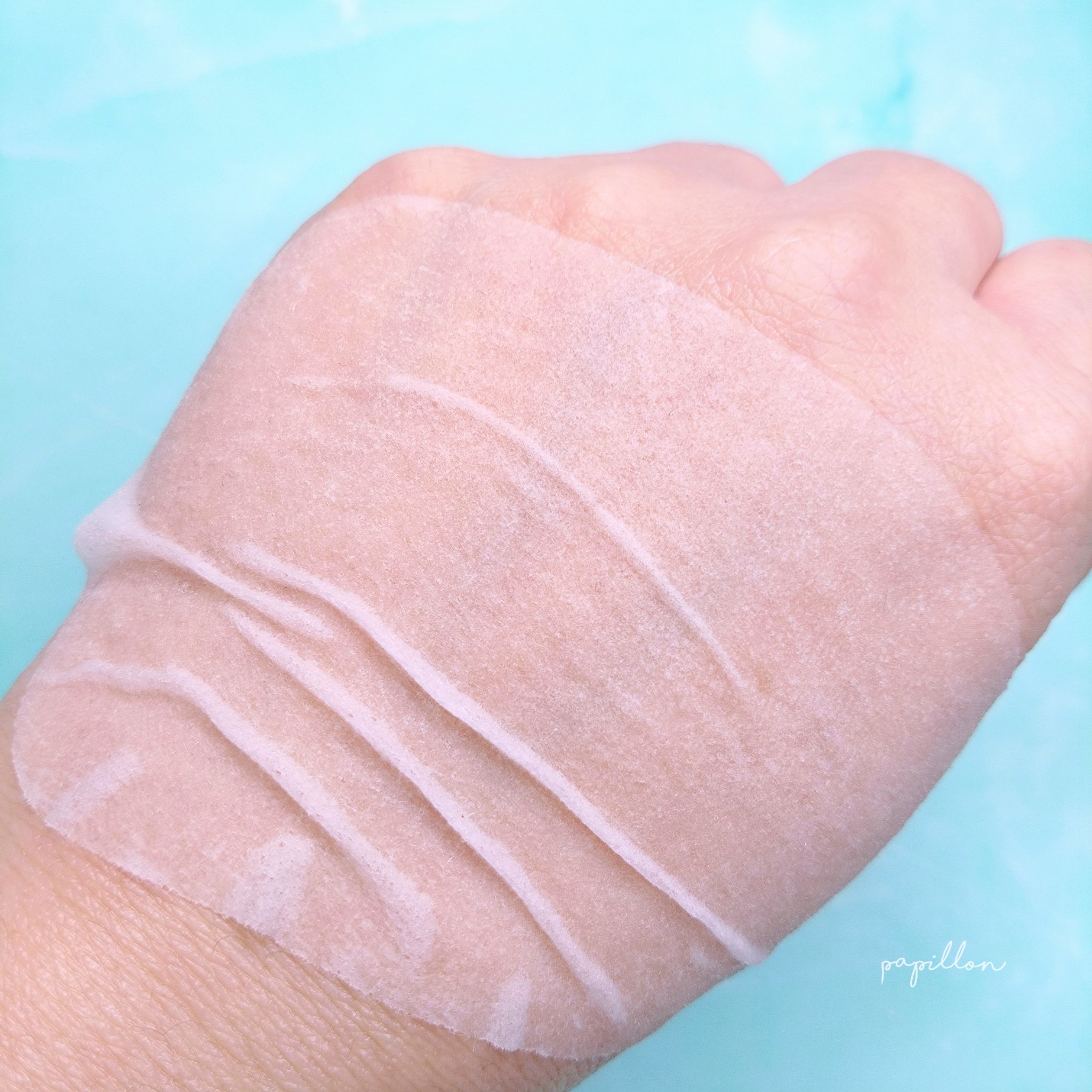 あまり見かけないタイプのマスクで鼻や頬のケアバタフライゾーンのくすみケアでエッセンスヒタヒタ! 低刺激でマスクは薄めですがしっかりとしており手軽にデイリーケアできます バタフライゾーンのケアにおすすめなポイントマスクです