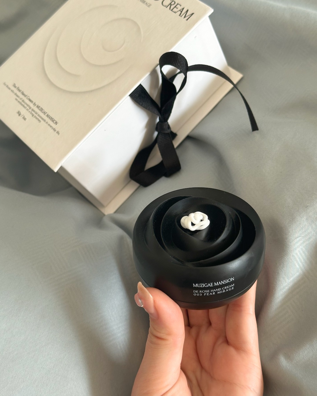 MUZIGAEMANSION✨ムジゲのオブジェハンドクリーム🥀🖤ドゥローズハンドクリーム🥰おしゃれな黒バラのパッケージがわくわくする!私が選んだ香りは、003のPearMirage優雅なスズランの香りとさわやかな洋梨の香りウッディの香りが癒さ...