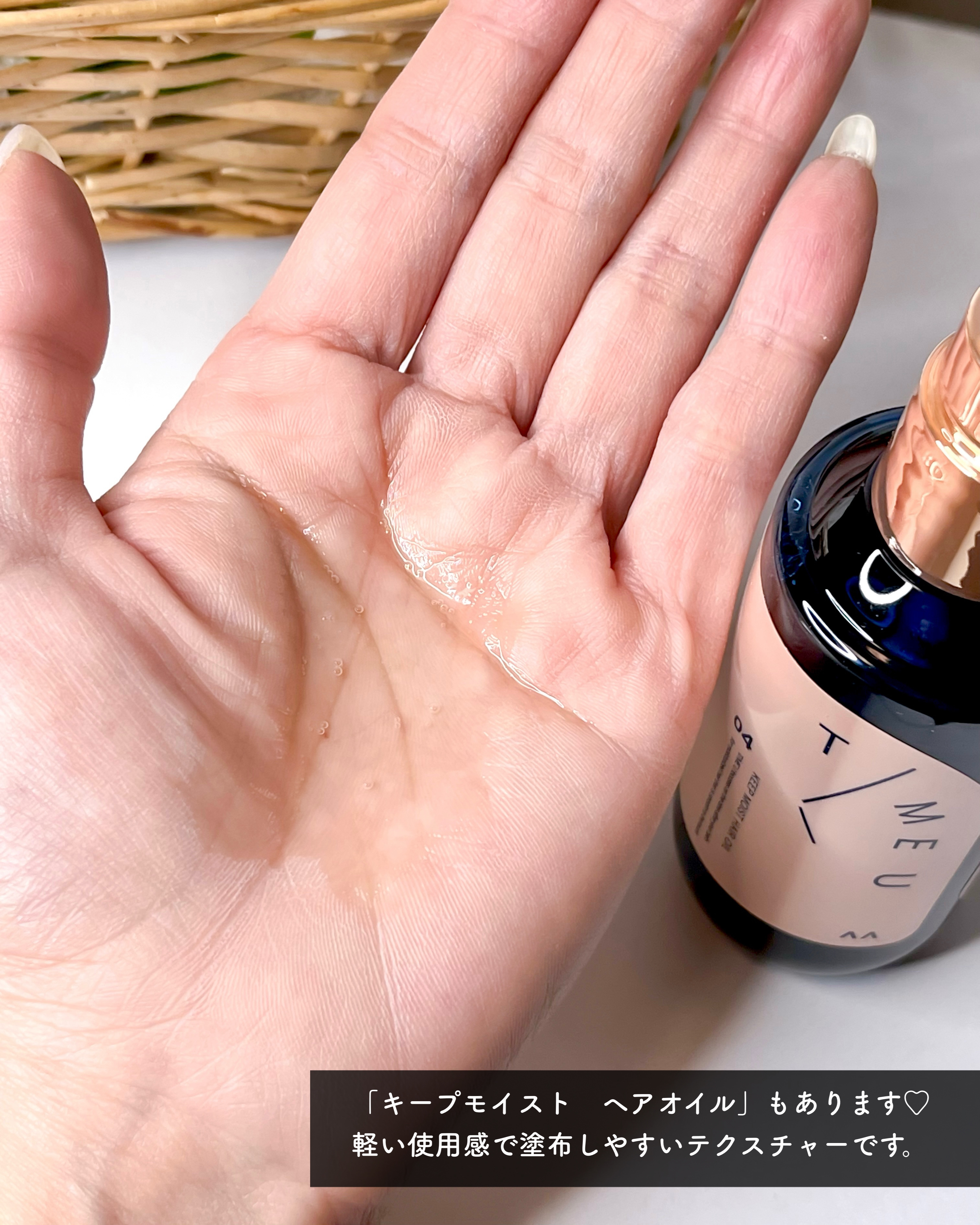 新ヘアケアブランド「T/ME U(タイムユー)」が新発売!お風呂あがりは美しいお肌や髪をはぐくむための美容のゴールデンタイム💎 <キープモイスト シェイキングミスト>お風呂あがりにひと吹きするだけでうるおいをすばやくチャージして抱え込む二層の美容液ミスト🧴 髪内部にうるおいを閉じ込める“うるツヤラッピング”ヘアオイル✨アビシニアンオイル(*4) 配合で髪内部のうるおいを閉じ込め、ツヤのある髪に導いてくれます◎