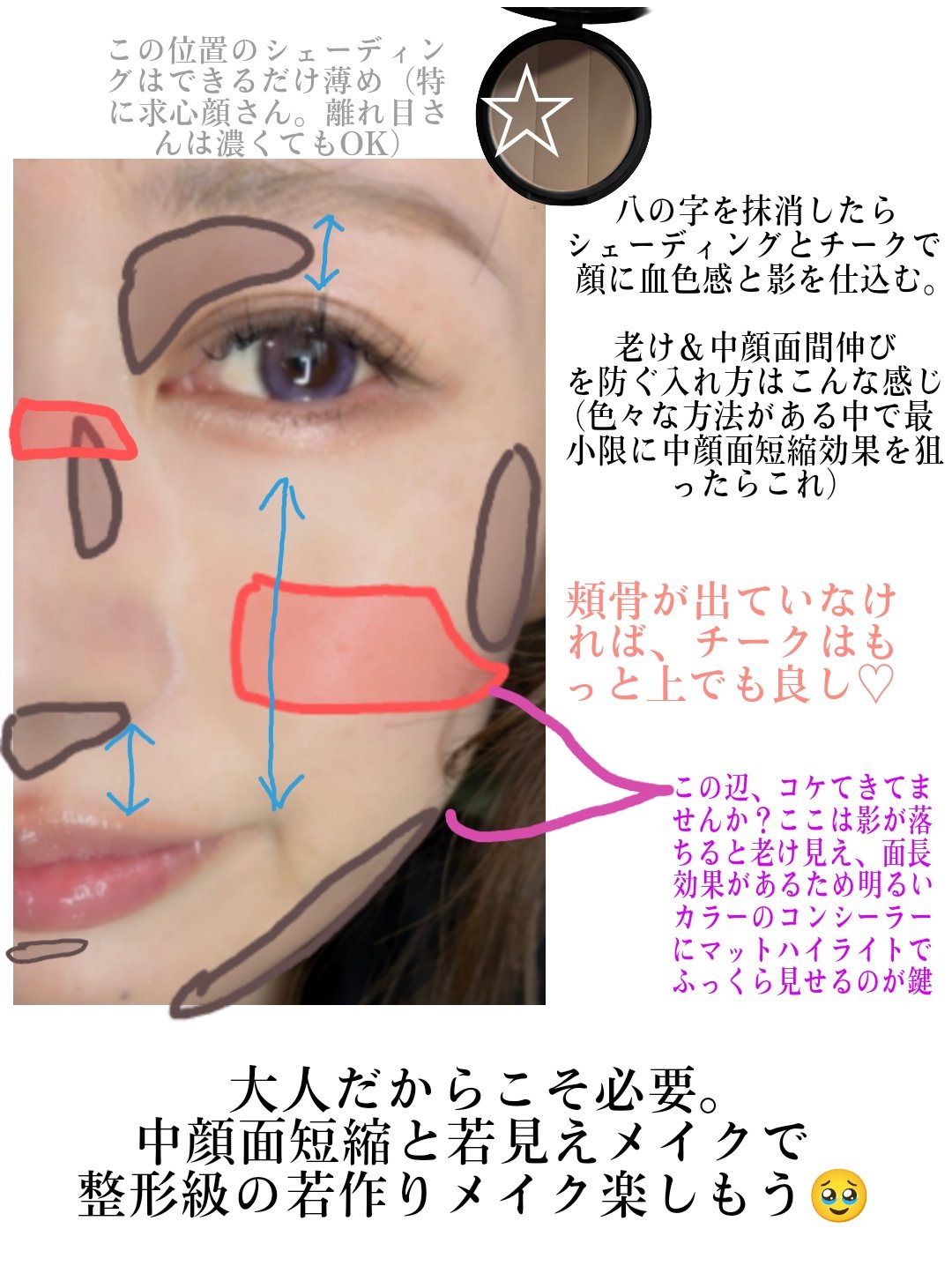 ちゅるっと見せが今のおすすめかな? ちゅるっとさせるには細いブラシがおすすめ❤ あーメイクって詐欺れるから楽しい。 盛れなかった日ももちろんあるけど盛れると1日楽しくなれる。 ハイライト、チーク、シェード、一体どこに何を入れれば盛れるの?!!って迷走中の皆さんに。