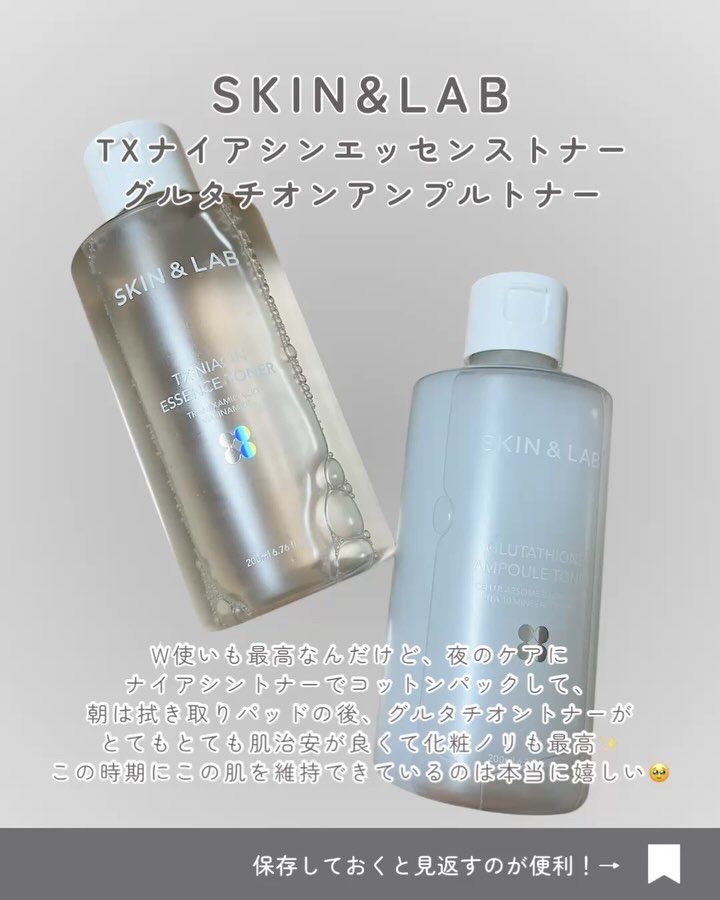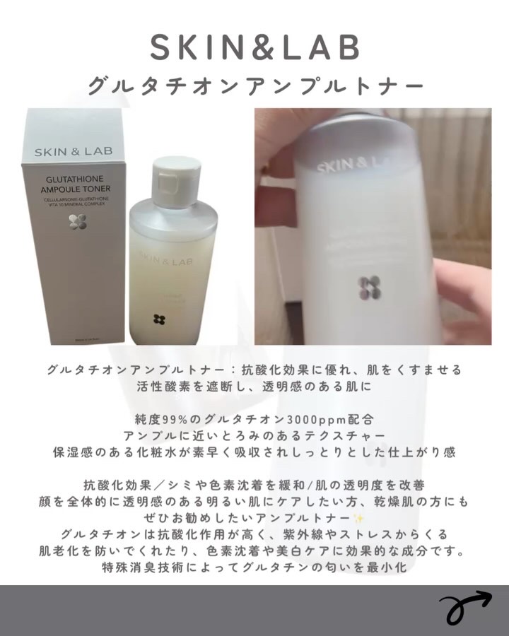 SKIN&LAB大人気トナー🩷グルタチオンアンプルトナー新製品トナー🩵TXナイアシンエッセンストナーこの2点の比較をしてみたよ👀💭💗☑︎グルタチオンアンプルトナー抗酸化効果に優れ、肌をくすませる活性酸素を遮断し、透明感のある肌に導いてくれる🤍...