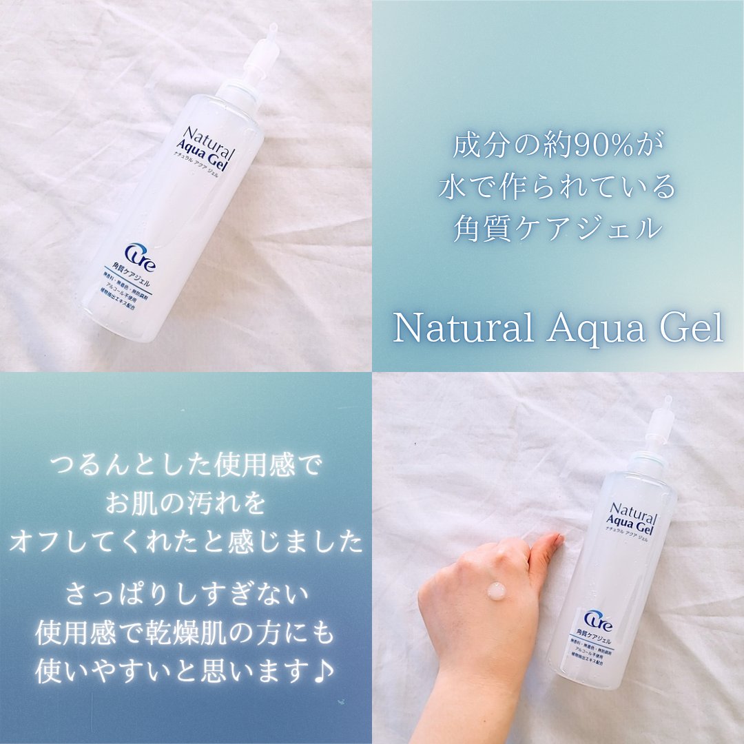 Cureナチュラルアクアジェルけっこう昔から知っているアイテム!ご存じの方も多いかと思いますが、くるくるなじませて角質ケアができちゃうアイテム。成分の約90%が水でできていて、無香料・無着色・無防腐剤という点でも使いやすいのかなと感じます。使...