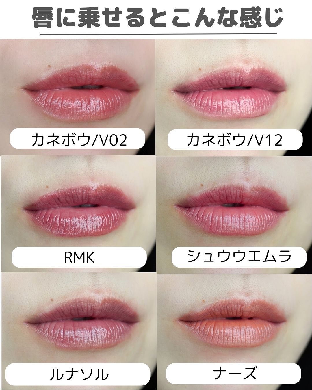 発色はけっこうよくて一度塗りでもしっかり色づく。 色持ちはティントじゃないからそこまでよくはないかな。 ツヤ感、透明感ありでどんなメイクの時にも使いやすい。 唇の血色悪い人はこの透明感で思ってたより発色しないかもしれない。 唇の血色いい人はヴィセの方が合ってそう。