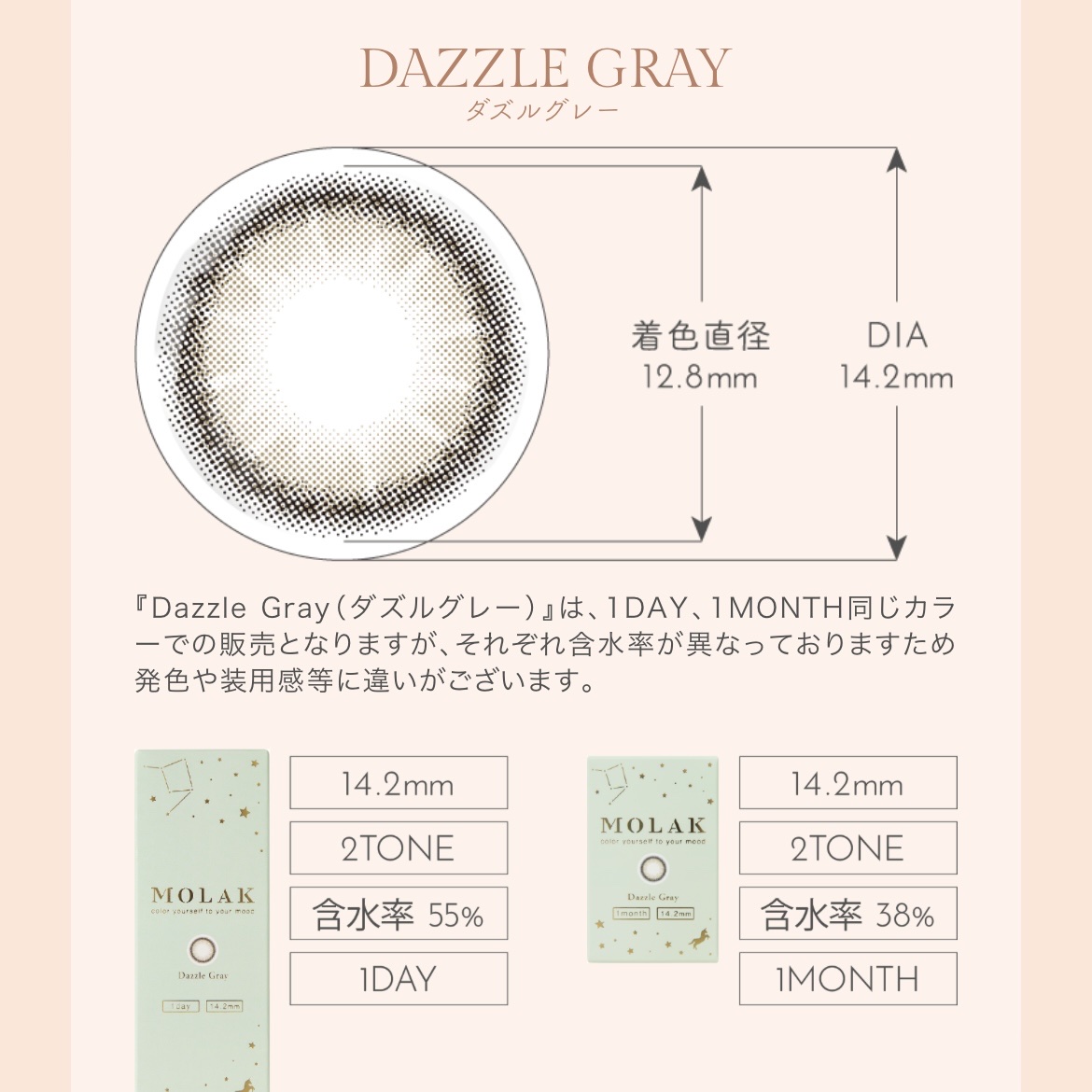 【使った商品】MOLAK1month(ダズルグレー、ドーリッシュグレー)【商品の特徴】①ダズルグレー・自然に盛れる・ザ・グレー・フチくっきり・着色直径小さめ(12.8mm)※奥目でも綺麗に発色しました②ドーリッシュグレー・ガッツリ盛れる・青み...