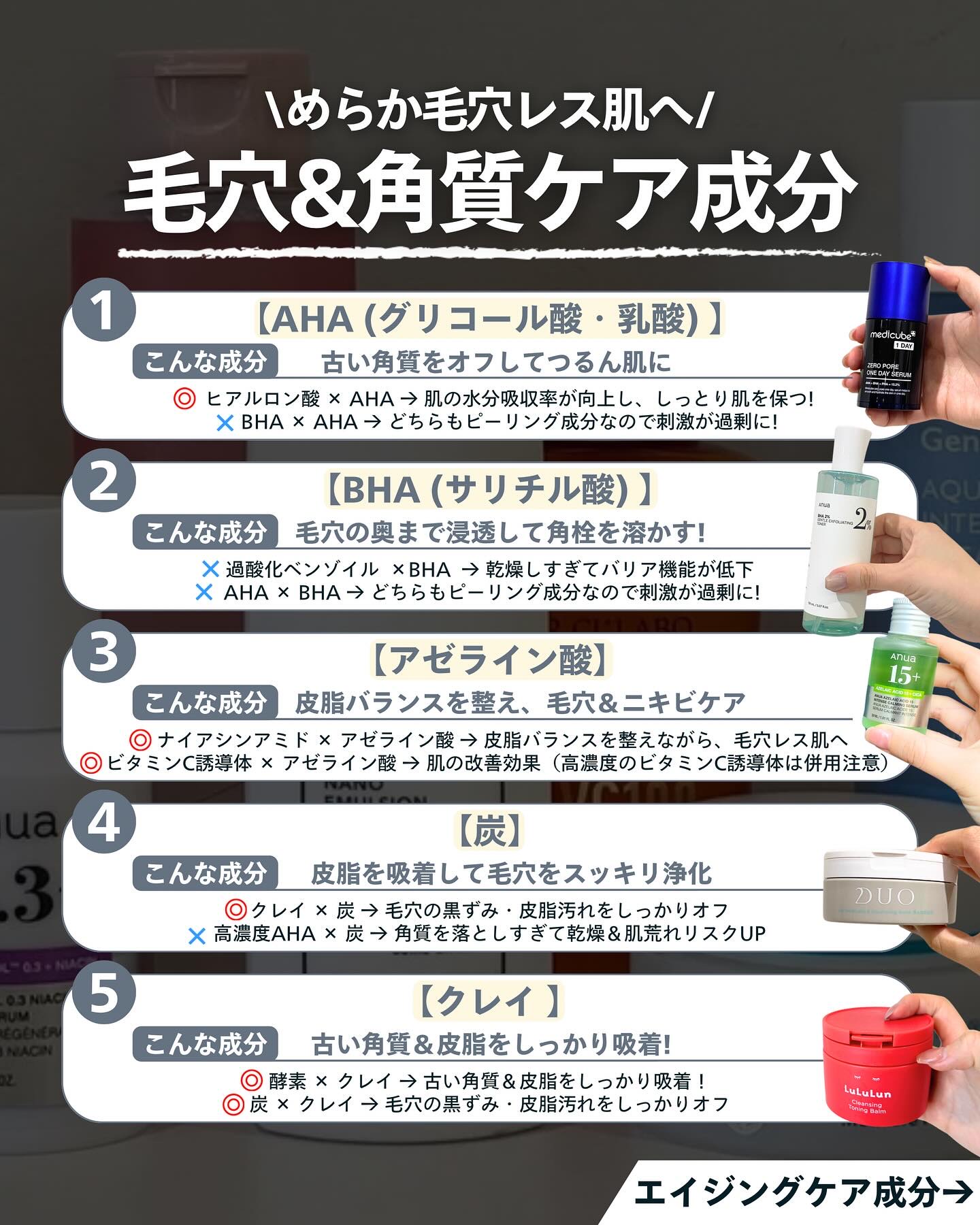 自分の毛穴タイプ、理解できてる?👀💭 今日はそんな毛穴の種類や特徴と、それぞれに適したお手入れ方法や化粧品についてまとめてみたよ!✨ 自分の毛穴タイプに適したケアをするのが毛穴レスへの近道だから ぜひチェックして自分に合ったアイテムやお手入れ方法を取り入れてみてね✔️