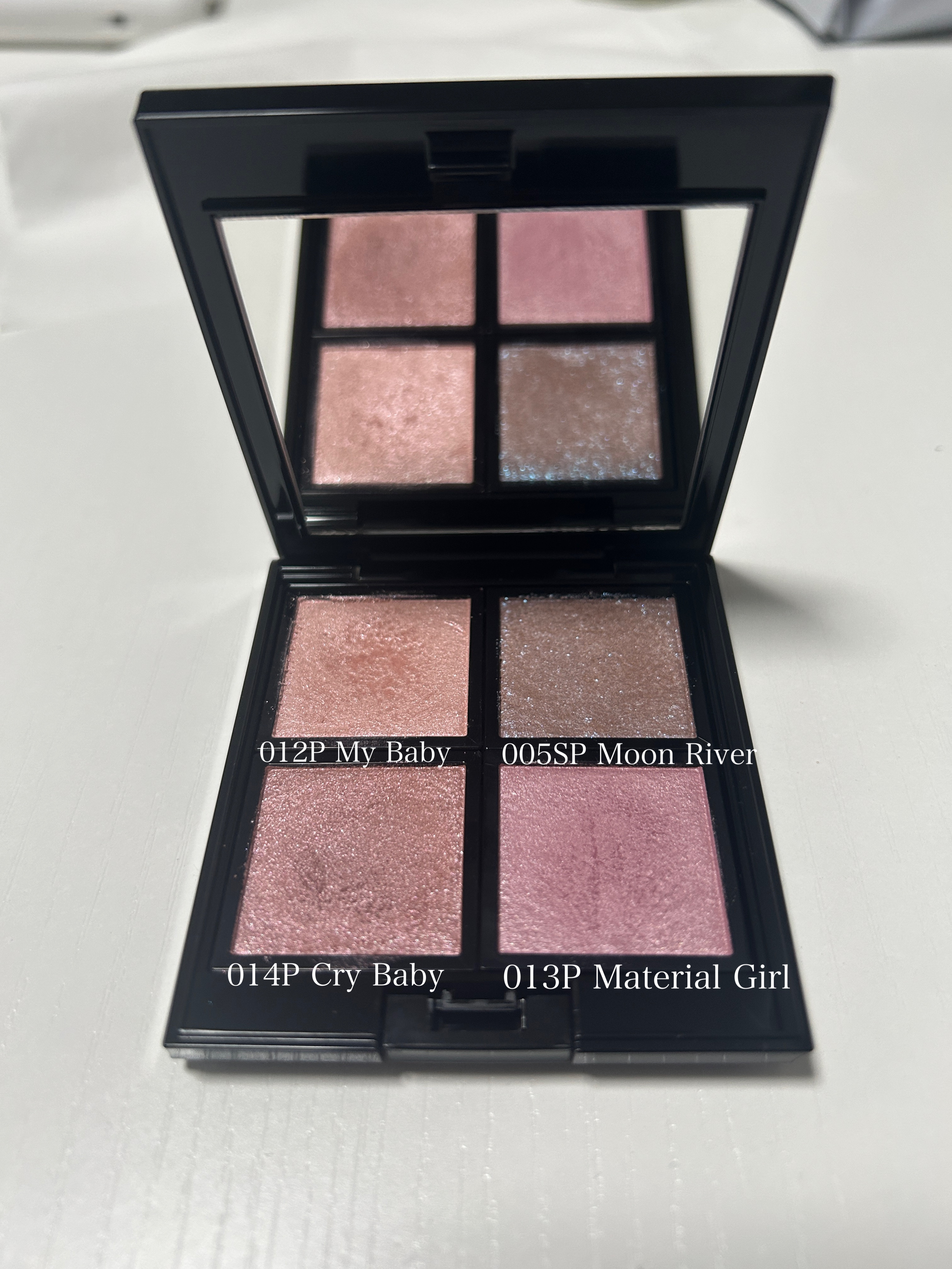 繊細なラメが瞼の上でチラチラ輝くのが可愛い。粉質が柔らかくて良い。 全色ラメなのでギラギラしすぎるかと思いきや、繊細なラメがチラチラと瞼の上で輝いてくれるので上品な印象を与えてくれます。 もっと早く出会いたかったアイシャドウです!これからたくさん使っていく予定です❤︎