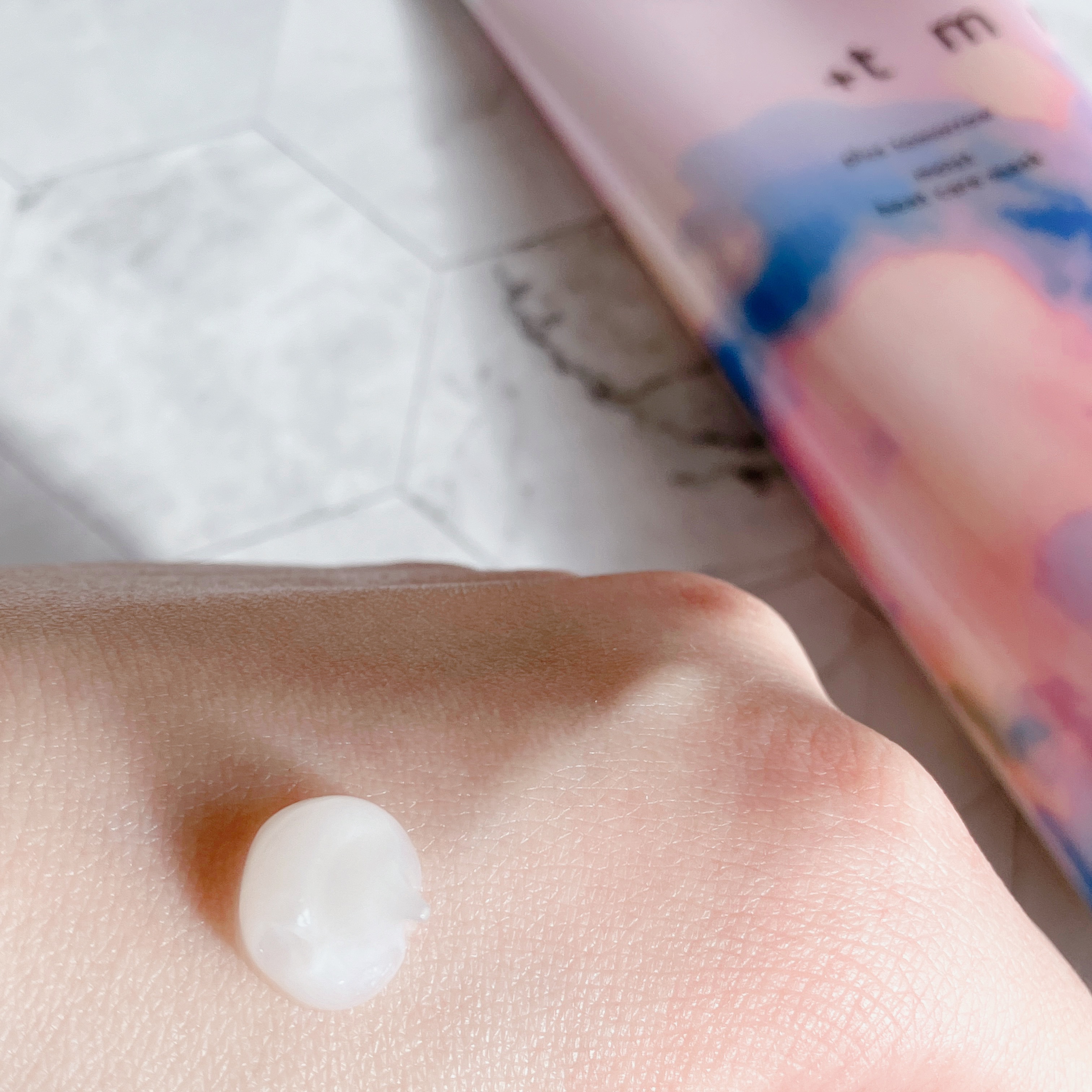 手に乗せた感じだと少し重そうなテクスチャーだなと思いましたが、軽いつけ心地で伸ばしやすい。 クリームで油ぽくないので、脂性肌よりの私でも全顔で使えました! 肌が敏感な方や乾燥ぎみな方は肌がピリつくかもと書いてありましたが、私はピリつきもなかったです! ピリつきがあった方はしっかりと保湿してから塗るといいそうです😌💕