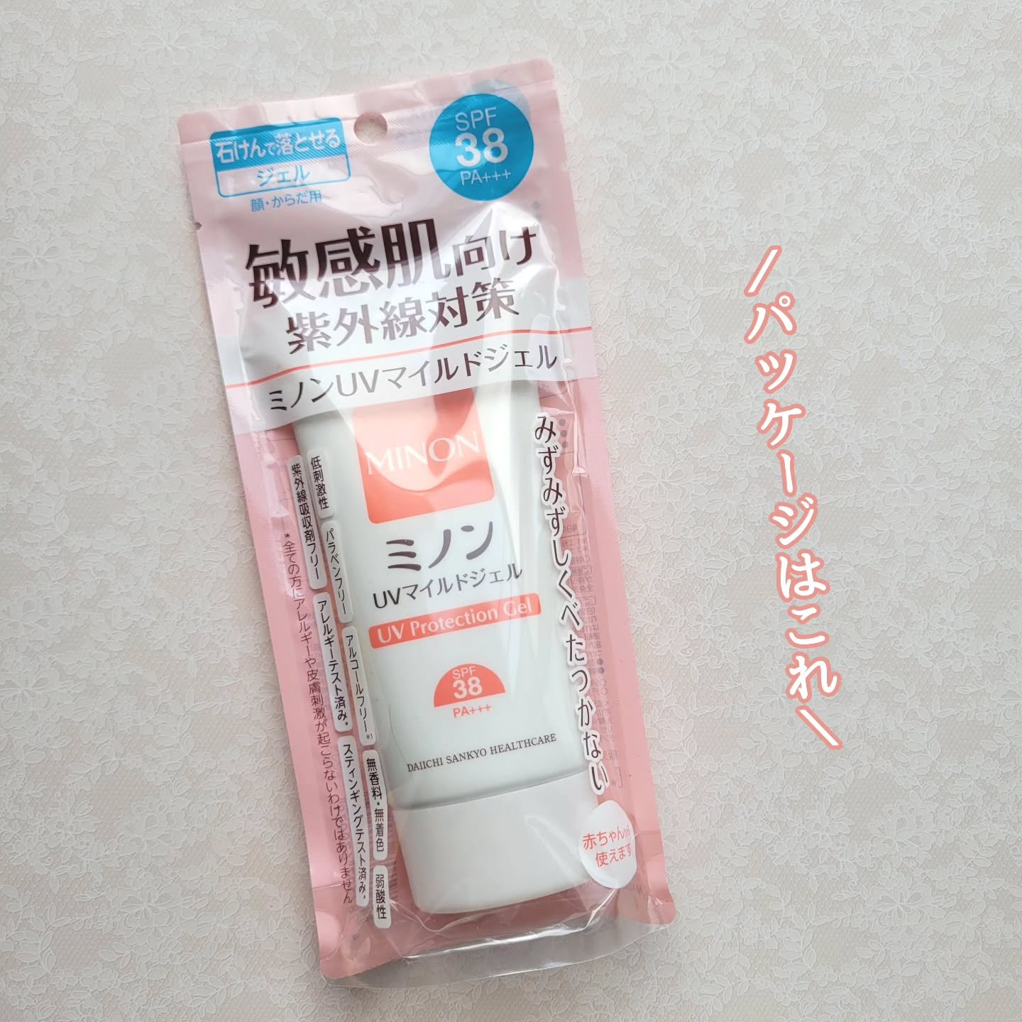 肌のバリア機能を守りながら紫外線を防ぐミノンの日焼け止めに、とろりなめらかなジェルタイプの「ミノンUVマイルドジェル」が新登場✩ SPF38、PA+++ ☀️𓈒𓏸 紫外線吸収剤フリー・パラベンフリーの特徴が🪄⭐︎ 赤ちゃんから大人まで家族みんなで使えるから場所取らないし、みんなでがっと塗れるから時短にもなる🤍𓂃 𓈒