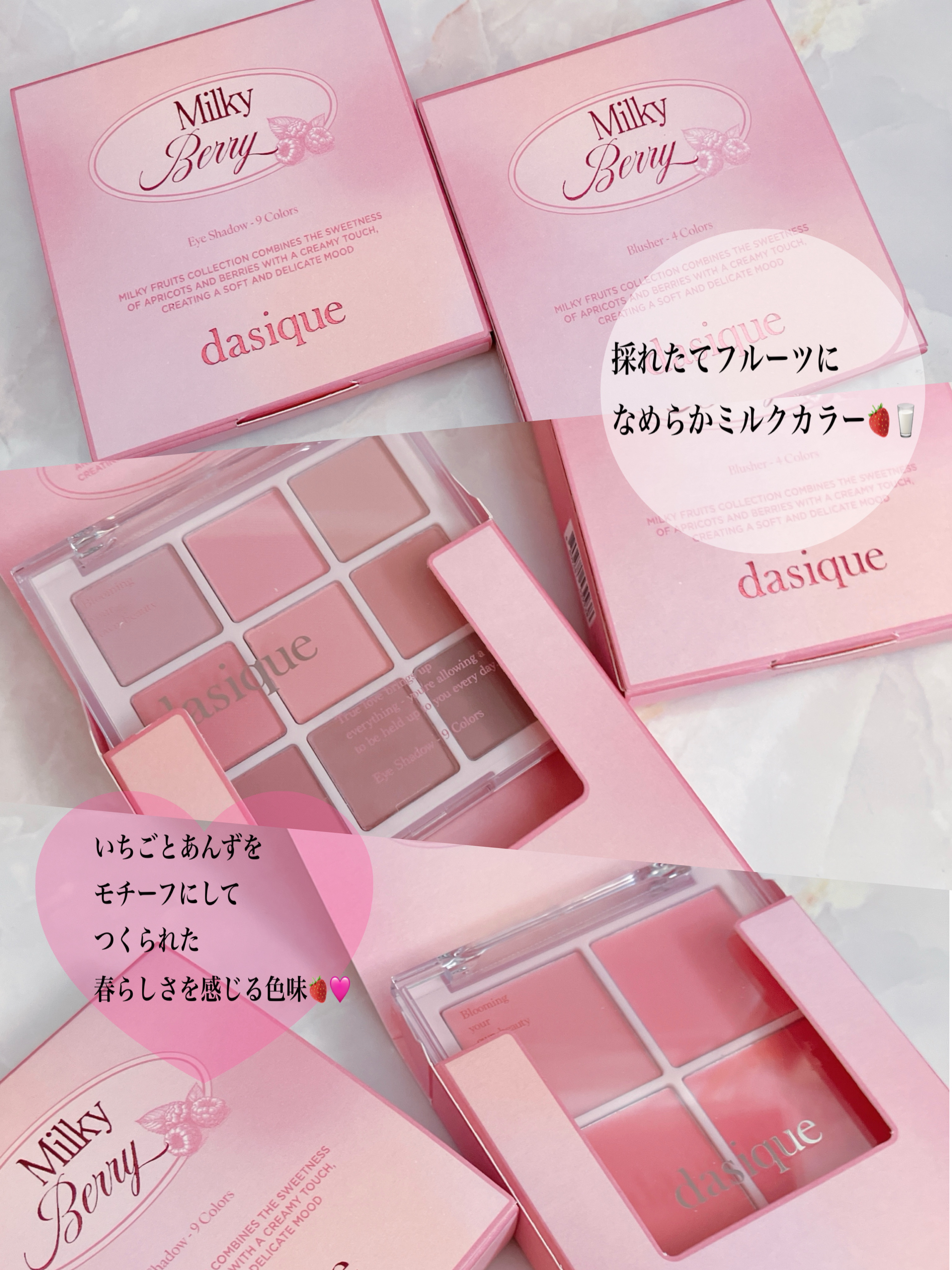 ミルキーフルーツコレクション🍼dasiqueシャドウパレット 33 ミルキーベリーブレンディングムードチーク 19ミルキーベリー滑らかなミルクにぽちゃんと落ちたフルーツの甘いカラー感をほのかに加えたシャドウパレット&クリームチーク🍼🫐クリーム...