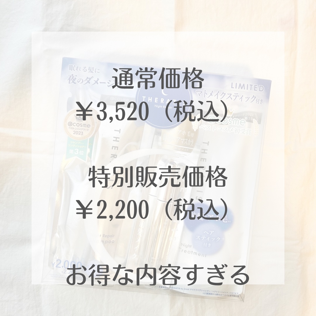 THERATIS ナイトリペア シャンプー/ヘアトリートメント | 1,540円 |