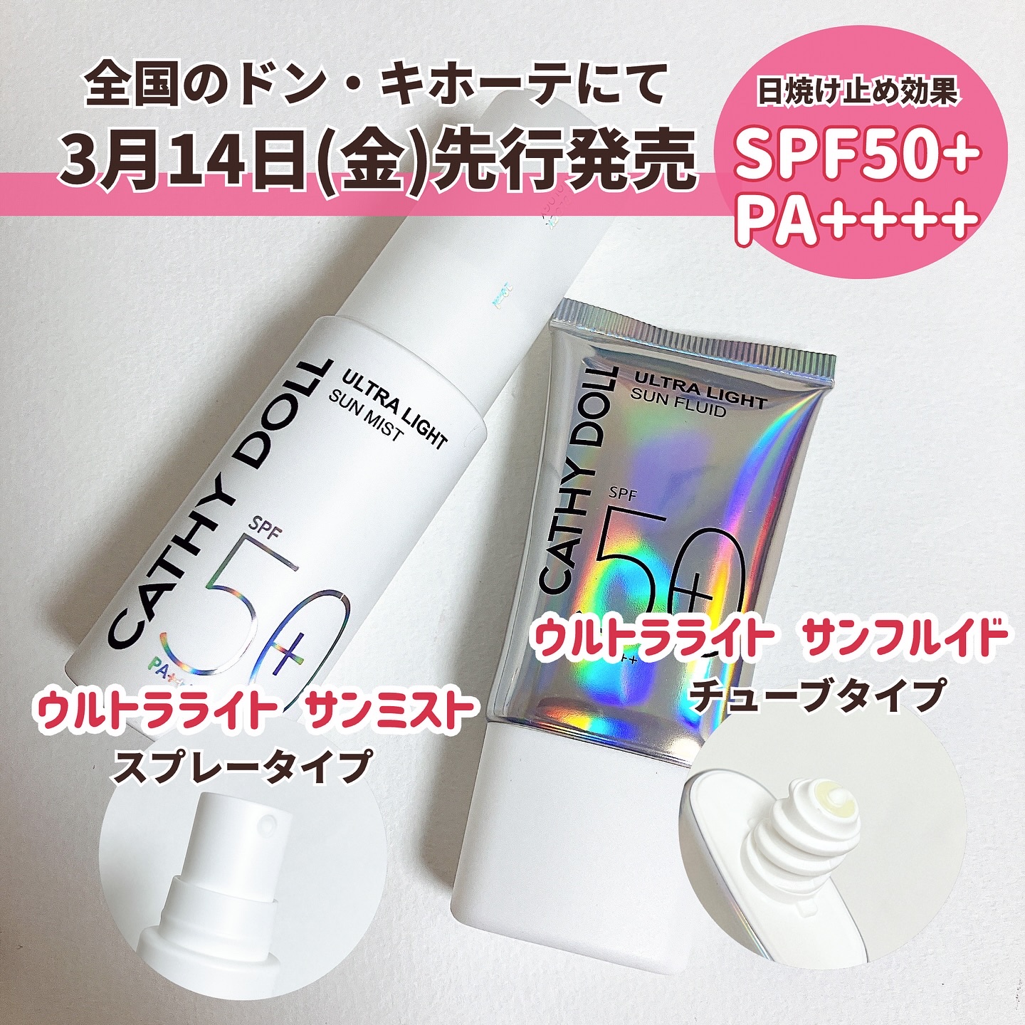 ☀️𓈒𓏸𓐍𓂃𓈒𓏸𓂃◌𓈒𓐍𓈒𓈒𓏸𓐍𓈒𓏸𓐍𓂃𓈒𓏸𓂃◌𓈒𓐍𓈒𓈒𓏸𓐍✔︎CathyDoll✔︎ウルトラライトサンミスト✔︎ウルトラライトサンフルイド𓈒𓏸𓐍𓂃𓈒𓏸𓂃◌𓈒𓐍𓈒𓈒𓏸𓐍𓈒𓏸𓐍𓂃𓈒𓏸𓂃◌𓈒𓐍𓈒𓈒𓏸𓐍全国のドン・キホーテで3/14から発売中の、キ...