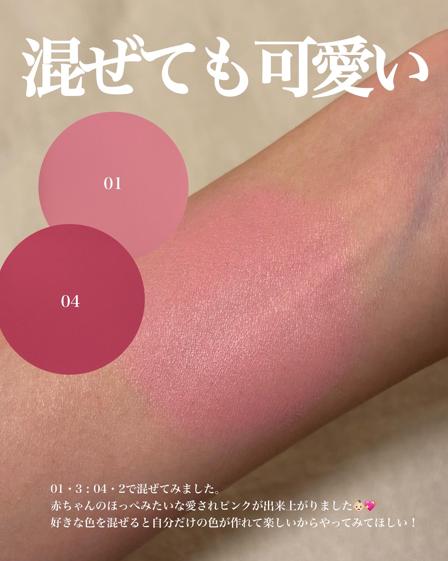赤ちゃんほっぺになれるチークをご紹介します👶 さらさらで細かいパールが入っているのでナチュラルな艶も出ます。 ほっぺにつけると元からこの血色感ですけど?っていうくらいナチュラルに色づきます👏🏻 990円とお値段が金欠民に優しすぎる。。可愛すぎるので、ぜひチェックしてみてください~!