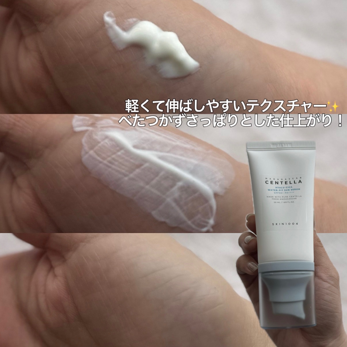 #SKIN1004🫧ヒアルーシカウォーターフィットサンセラムSPF50+PA++++と最大指数の日焼け止めですが、日焼け止め特有のベタつきやきしみ感がなくびっくり😳本当にスキンケアの一貫のような気持ちで使える、使用感のいいサンセラムです🤍白浮...