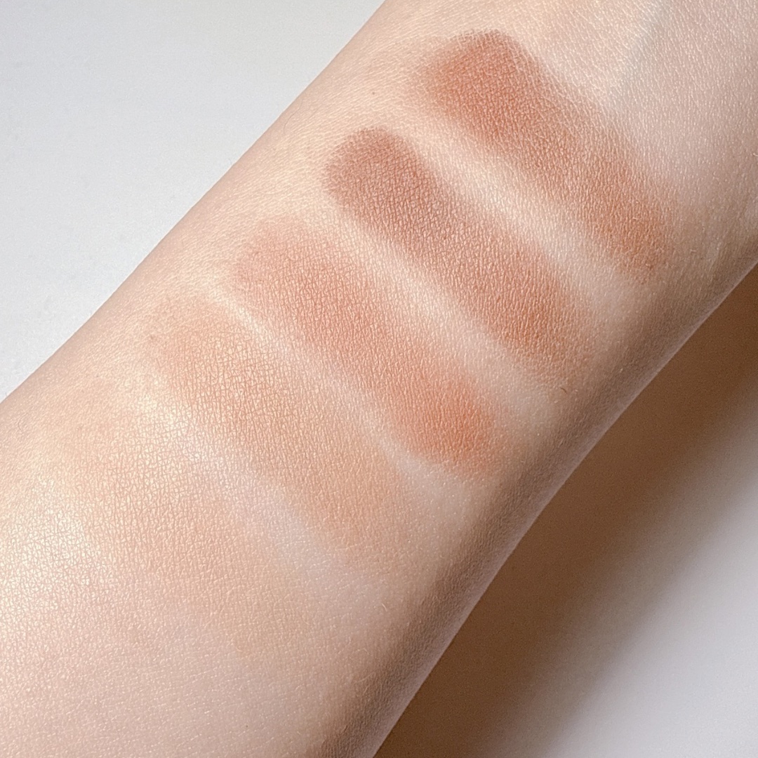 100円とは思えない発色の良さで、ラメが細かいものからグリッターまで色・質感が違うものが入っています イエベ向きの無難なブラウンで使いやすい🙆♀️ 全体的に粉飛び、崩れやすさがあるので、アイシャドウベースを使った方がいいと思います🦖⋆͛