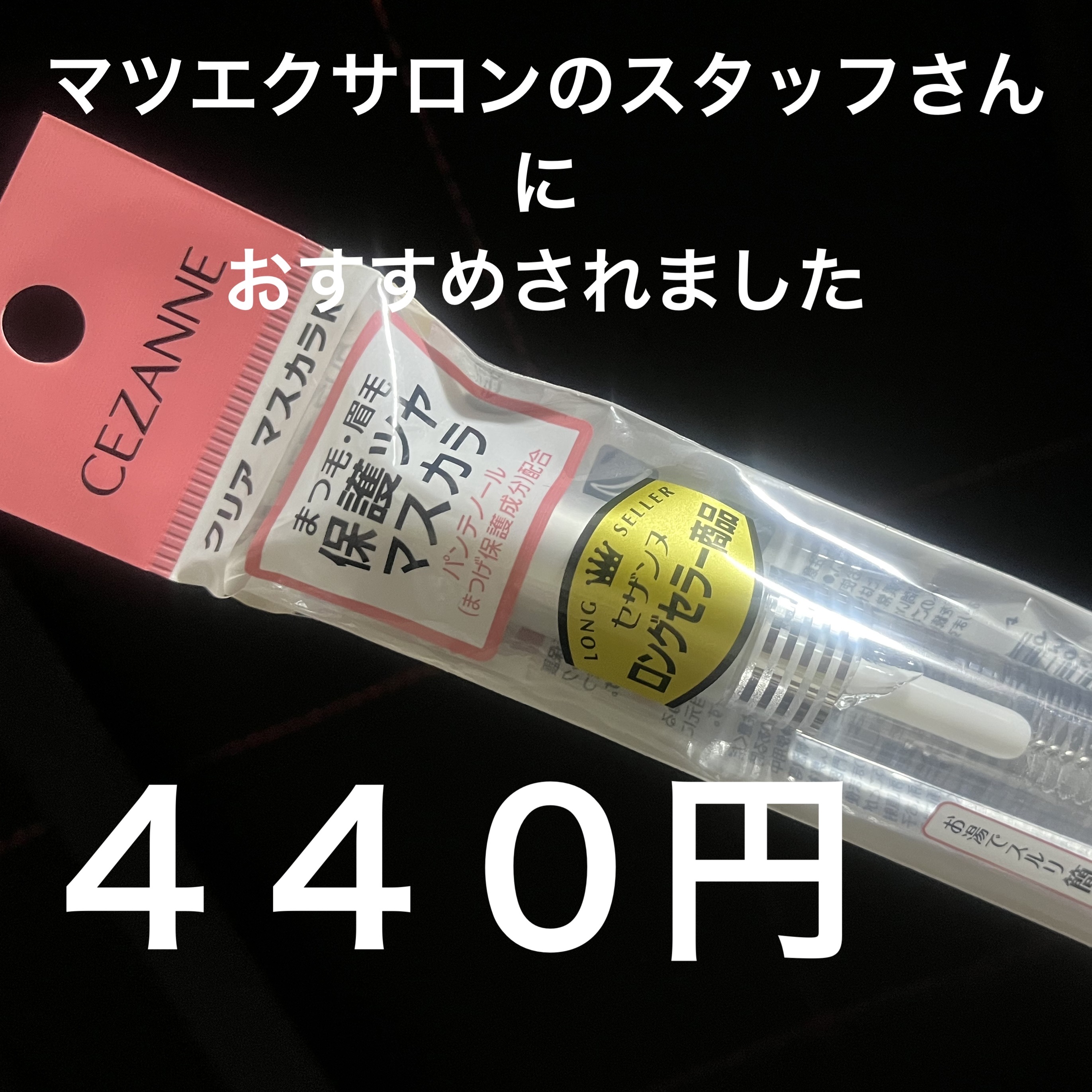 使いやすいクリアマスカラです!私はマスカラ後のトップコートとして利用していますが、様々な用途で利用できると思います! CEZANNEクリア マスカラR¥440 こちらLIPSオンラインで購入しました!