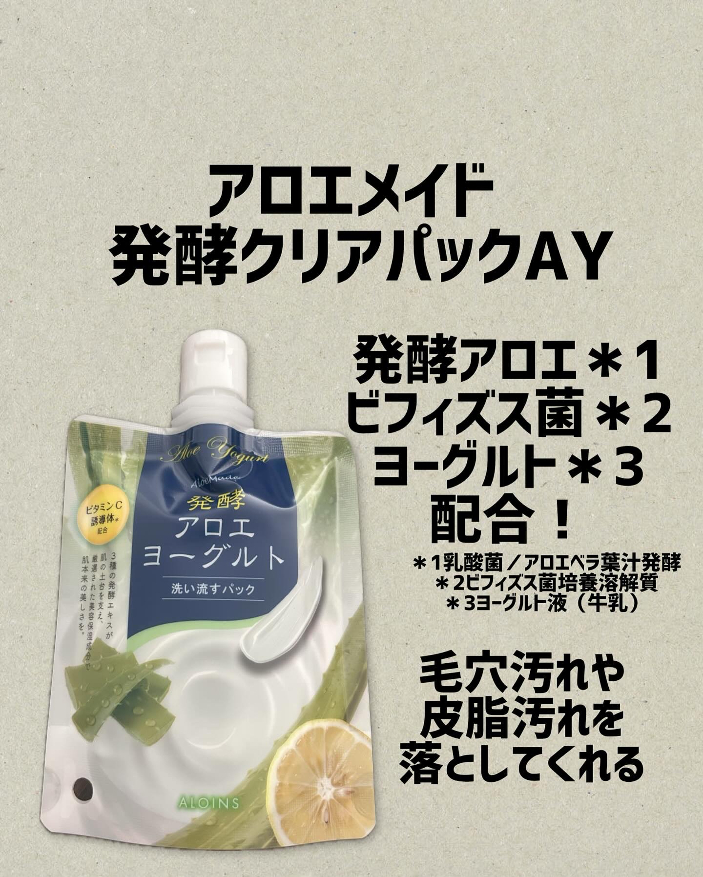 #PR先進の肌研究から生まれた発酵スキンケア🌿アロエメイド🌿発酵クリアパックAY170g✔発酵アロエ✔ヨーグルト✔ビフィズス菌3種の発酵エキスを配合🌿ホワイトクレイも配合し、毛穴汚れや皮脂汚れもスッキリ!顔に塗って、5分パック✨洗い流せば、お...