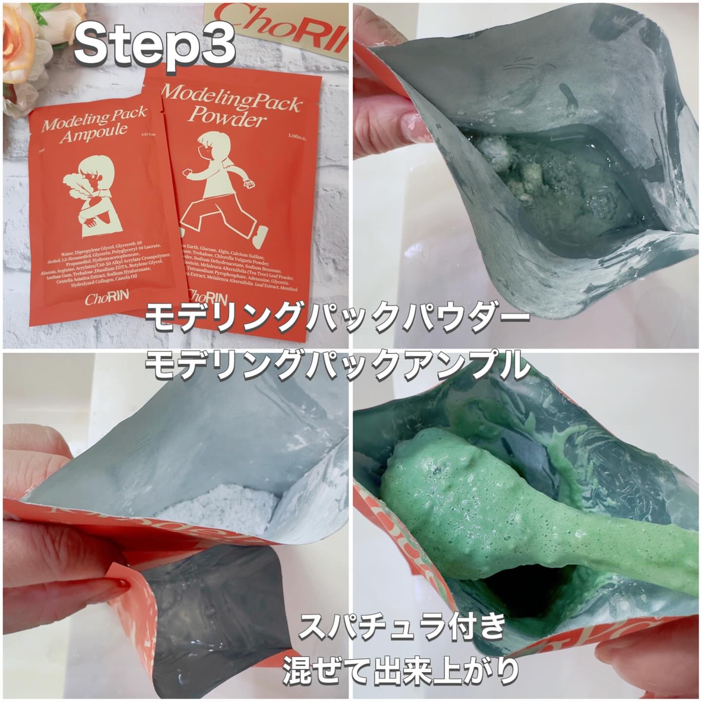 🇰🇷丁寧な3STEPパックでお肌を労る贅沢時間を🍀CHORIN HomeAestheticCareSet✔️商品についてモデリングパックをする前にピーリングジェルとマスクパックでお肌に足りない栄養を満たし、有効成分を極大化してくれる3step...